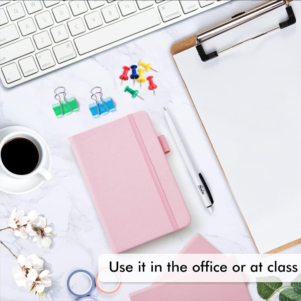 feela 15 Pack Pocket Small Notebooks Bulk, Mini Cute Memo Notepads Hardcover College Ruled Lined Journals with Pen Holder for Women Girls Office School, with 15 Black Pens, 3.5”x 5.5”, A6, Rose Pink