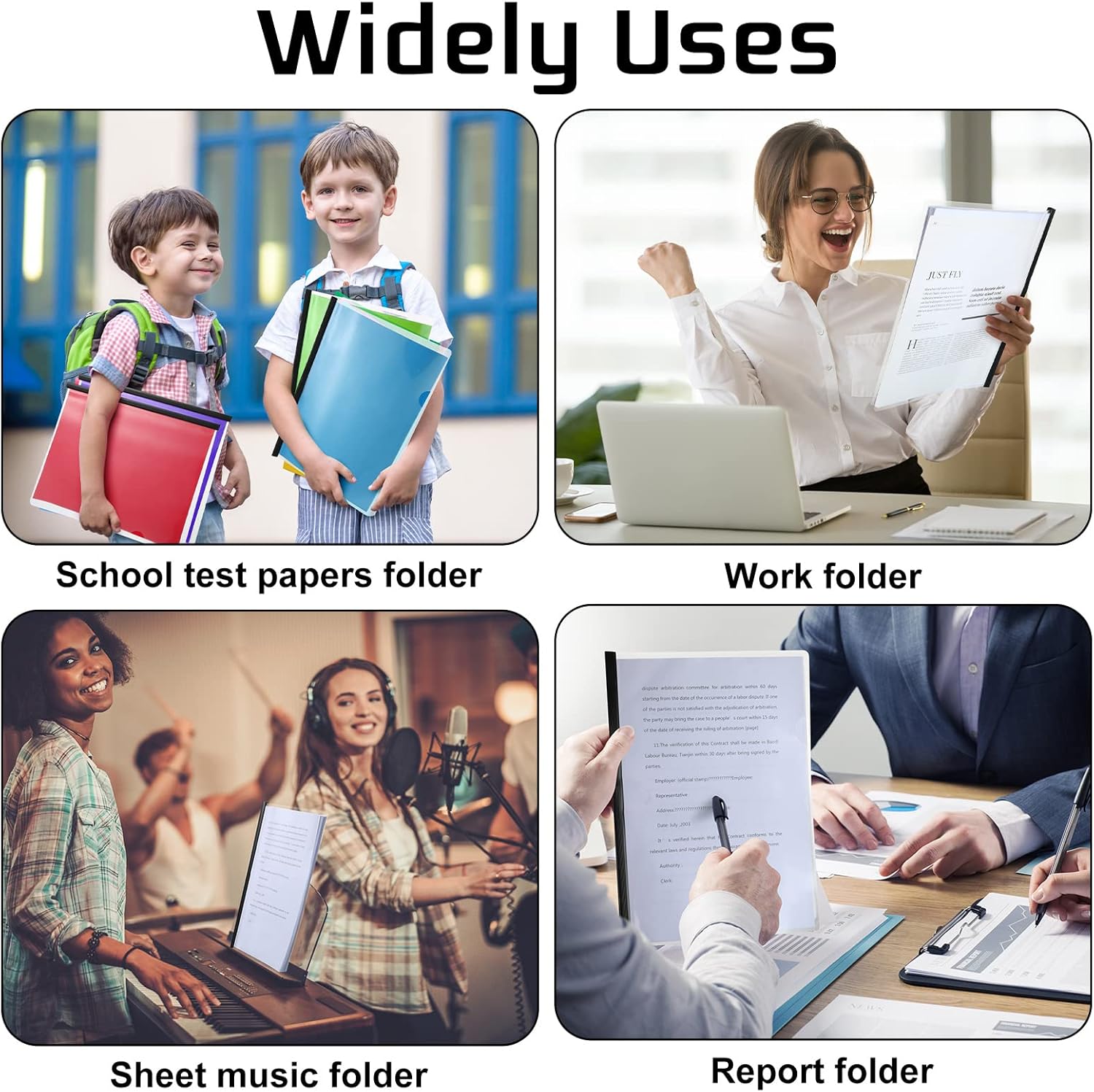 - Widely Uses: clear resume covers with slider bars can store documents, files, plan calendars, business plans, design drafts, book reports, sheet music, test papers, and you can apply it in the hospital, office, home, concert, speech and more