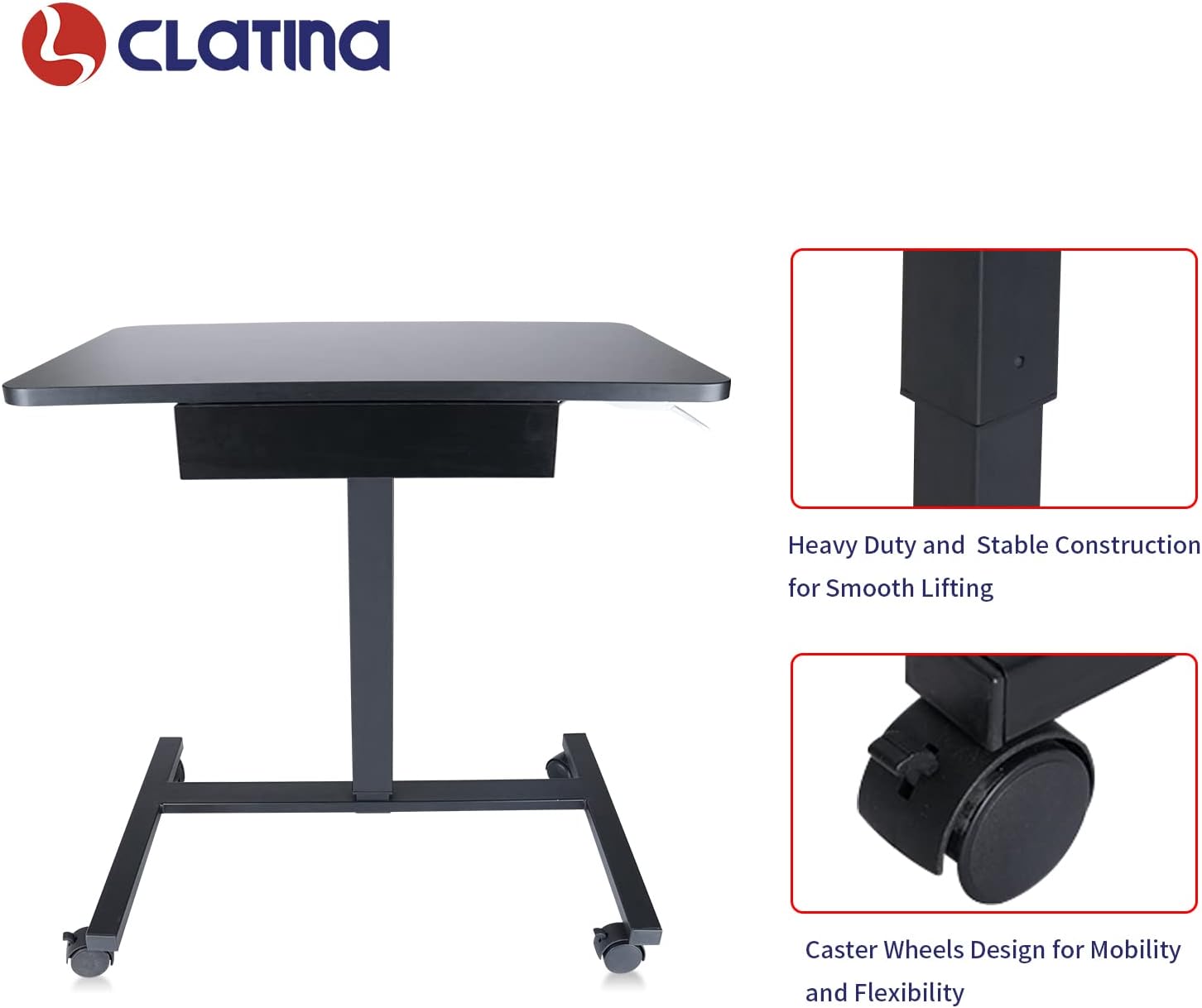 - ăEASY TO INSTALL & PROFESSIONALă: No need for extra mounting tools. We provide detailed manual and all the necessary hardware to help assemble this mobile laptop desk more quick and efficient. we provide worry-free 3-year warranty, and friendly customer service. Come and experience this CLATINA multifunctional mobile standing desk.