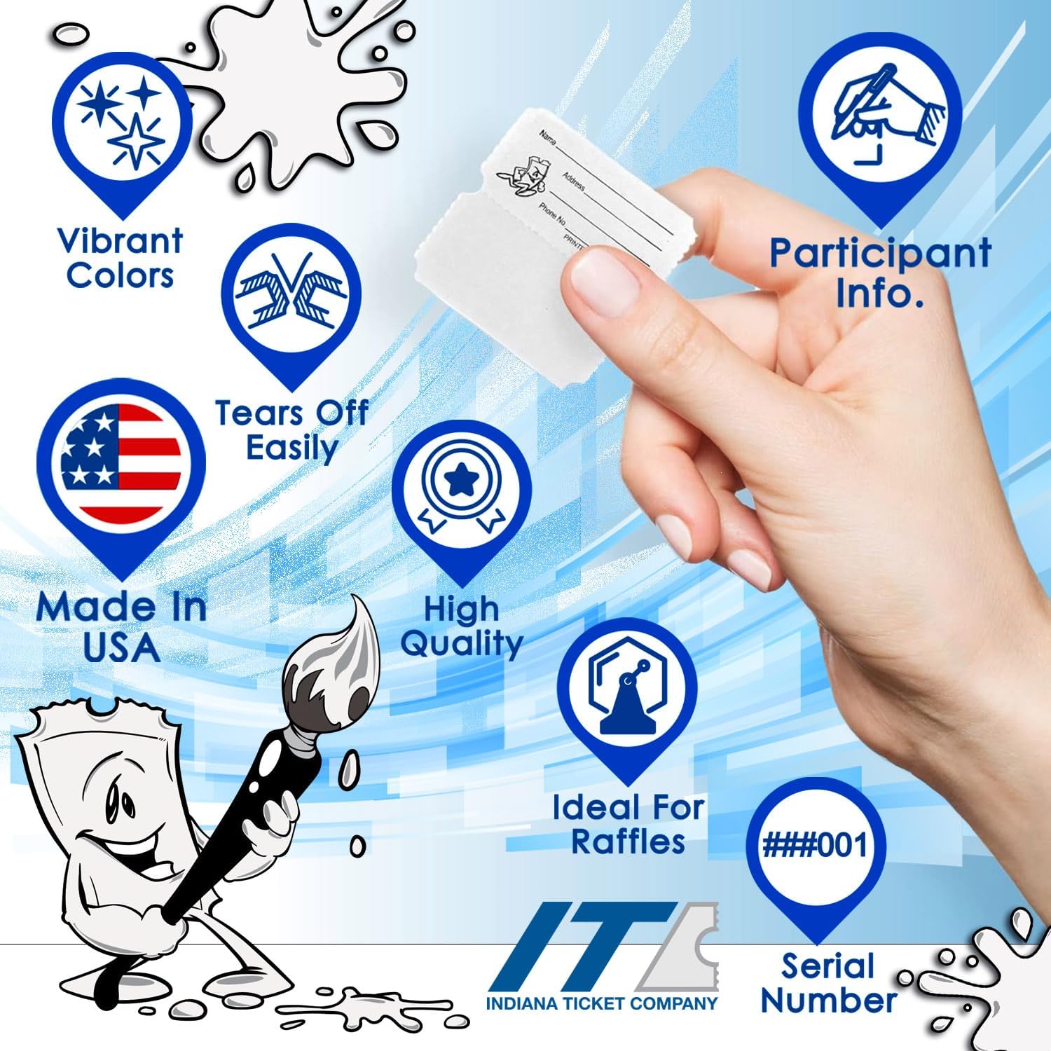 - HIGH QUALITY TICKETS – Sell chances to win prizes or split the pot with Indiana Ticket Co. raffle tickets. Each roll contains 2,000 double stub raffle tickets for 50/50 raffles, giveaways, carnivals, drawings, door prizes, corporate events, trade shows and more.