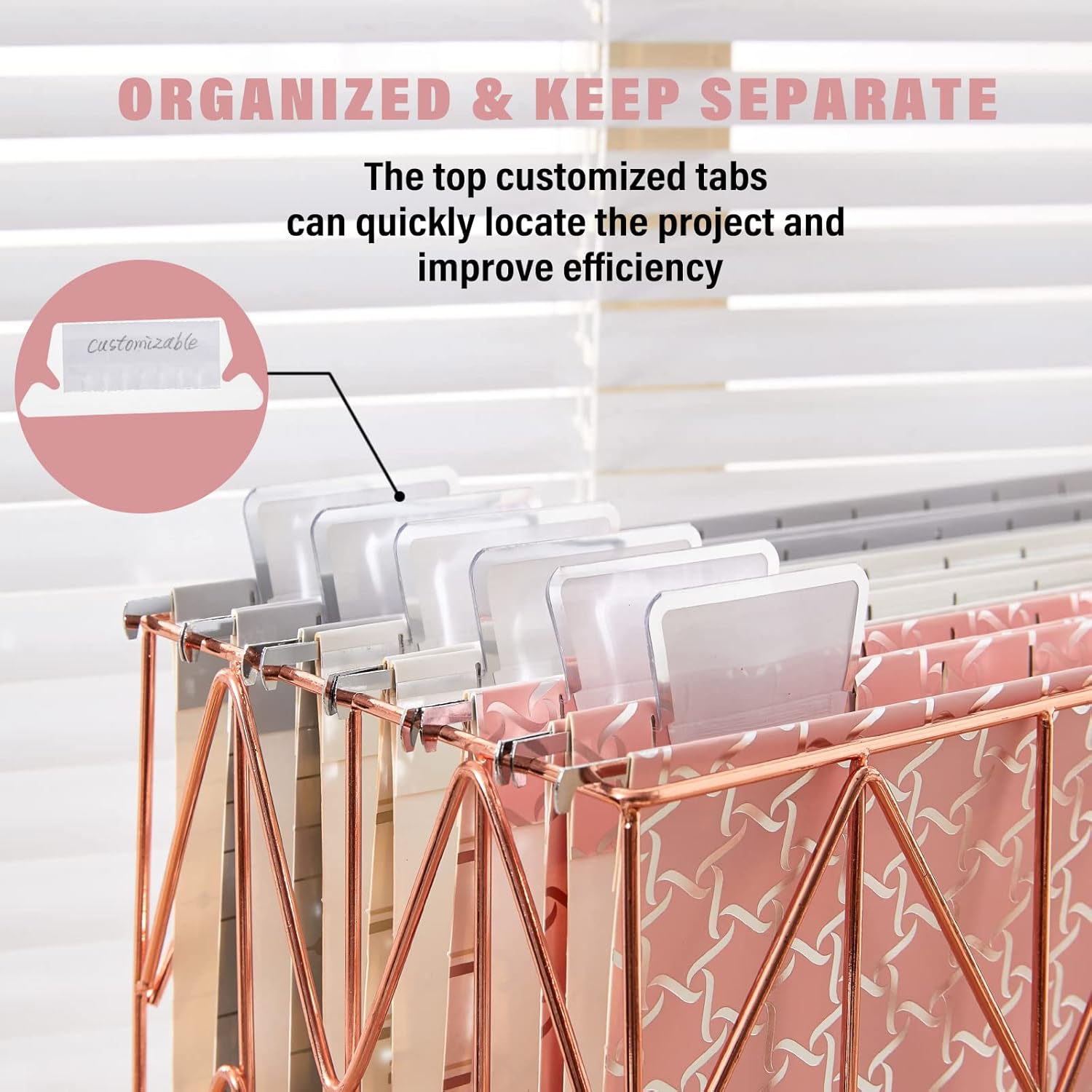 - Sliver Foil Design - Unlike traditional file folder, our sliver gold foil of hanging file folder and tabs can match the gold desk organizer, and bring fashion and a modern atmosphere to your desk, create a more luxurious and elegant space
