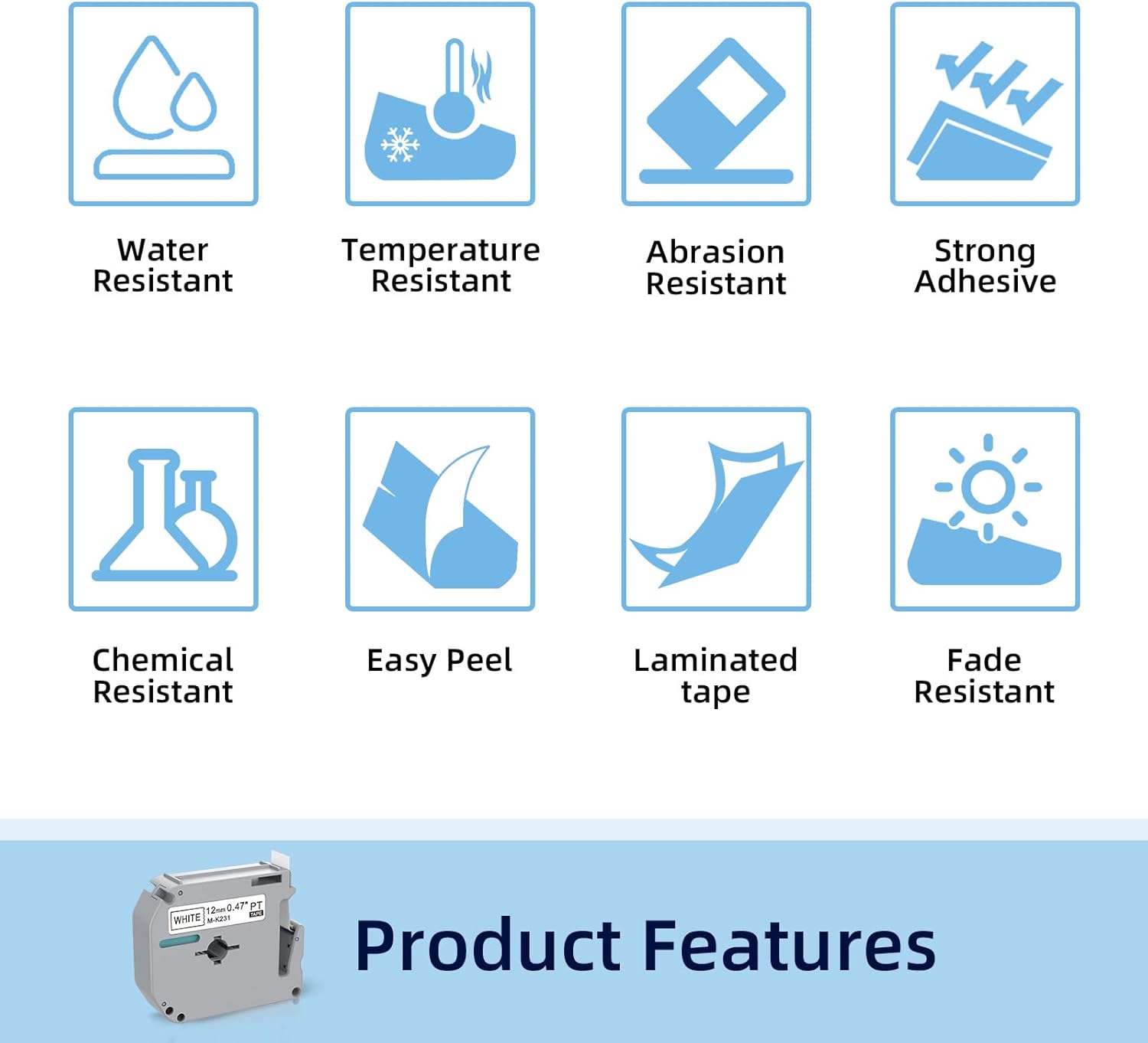 - This compatible M-K231 brother label tape has features of waterproof, oil proof, can prevent mild friction, suitable for indoor use.