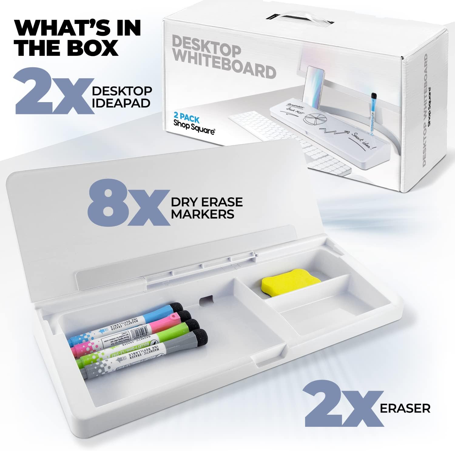 Desktop Whiteboard - Glass Dry Erase White Board - Desk Computer Buddy – Home Office & Studying Essentials - with Phone & Tablet Slot, Storage Compartment - Includes 4 Markers, 1 Eraser (2 Pack)