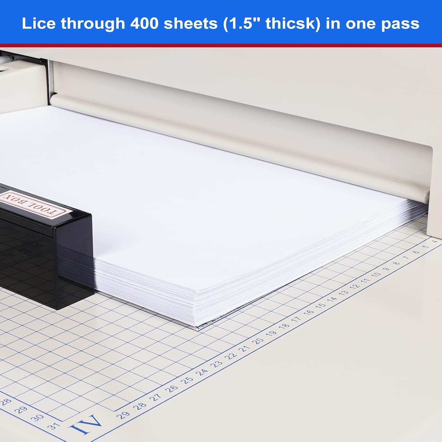 • ★【Wide Application】Paper cutter heavy duty with a maximum cutting length of 12” allows to cut up to 400 sheets of paper (for 80g A4 Paper) once; Besides common paper, our heavy duty paper cutter can also cut something like soft PVC, leather, non-woven fabric, bubble film, fabric pearl cotton and etc, meeting your different cutting needs to the greatest extent& suitable for homes, classroom, offices, companies, printing factories, copy shop, etc..