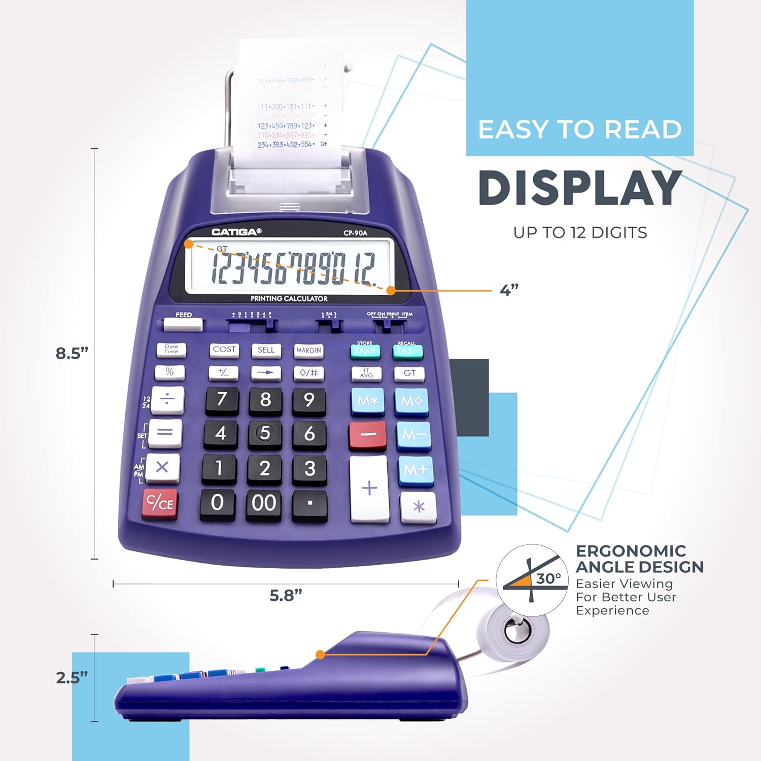 CATIGA New & Upgraded 2025 Printing Calculator Adding Machine 10 Key, Desktop Home Office Calculator with Paper Roll Print Out, Accounting Business Finance