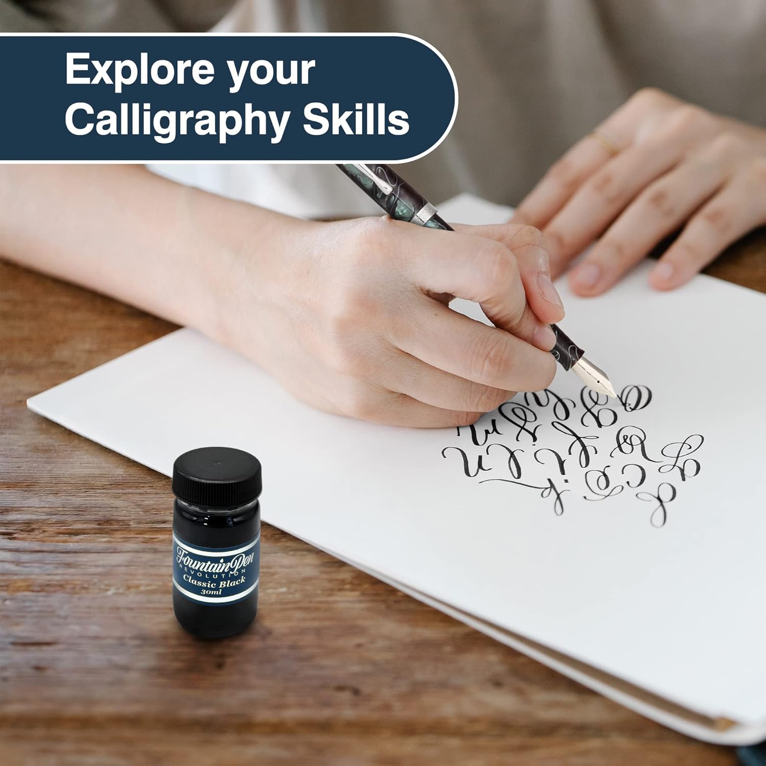 - Superior-Quality: This black fountain ink for pen is crafted with premium components to support vivid and stylish penmanship. Each 30ml bottle black ink is highly saturated and produces a clear line definition with an even flow.