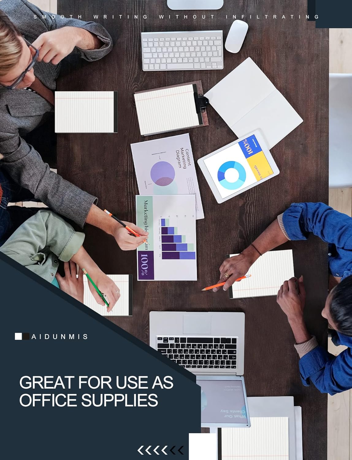 - [ENJOY WRITING AGAIN]: The note pads 5x8 lined paper has black lines and double red margin lines on left, narrow-rule format provides plenty of space for your notes. Small legal pads smooth, premium-weight paper allows your ballpoints and ink gel pens to glide across the page. Legal pads 5x8 college ruled writing stays on the surface and resists ink bleeding and show-through. The note paper pads won't yellow over time, thicker than average writing pads for smooth writing with less ghosting.