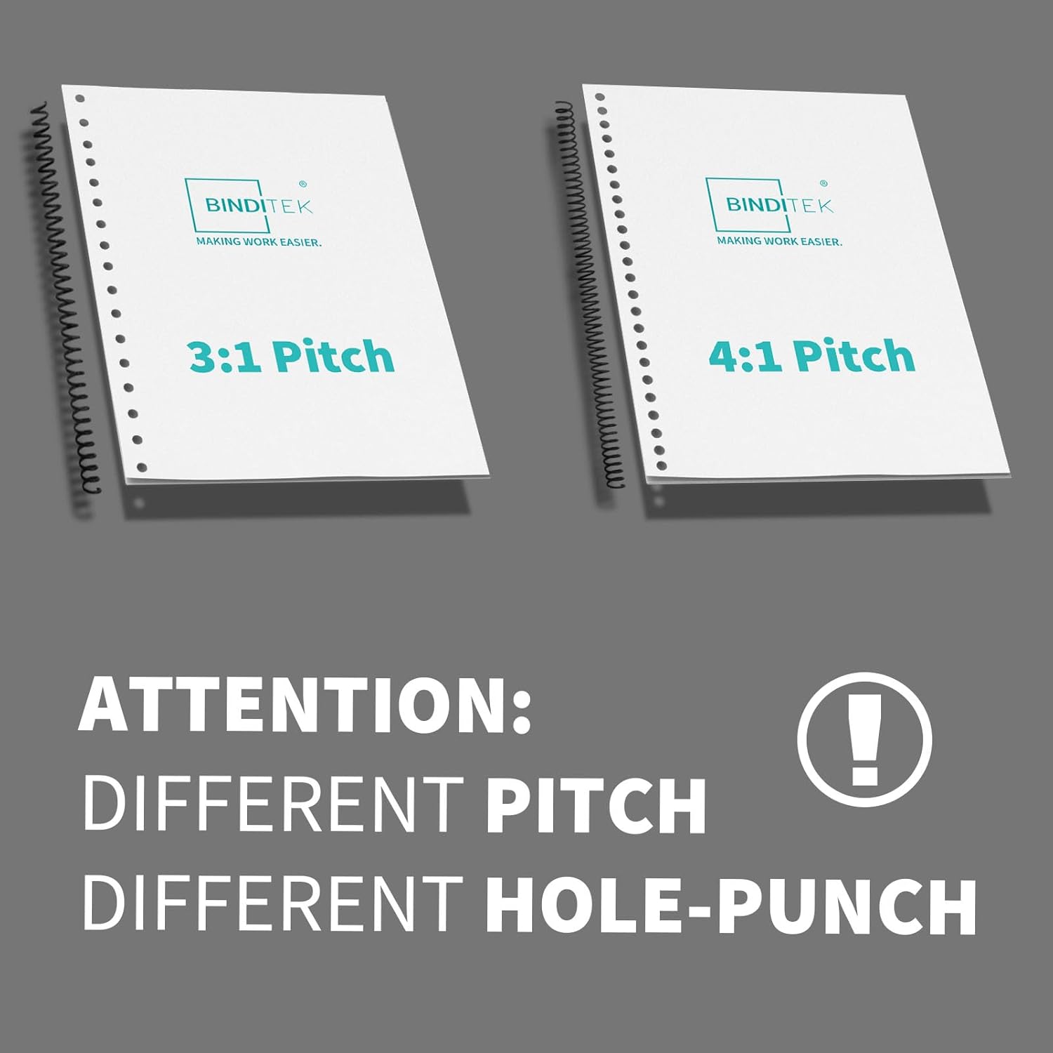 - 【3:1 Pitch & 36 Loops】These spiral binding coils have a 3:1 pitch, meaning they work with any binding machine that punches 3 holes per inch. They are ideally compatible with Binditek spiral binding machine.