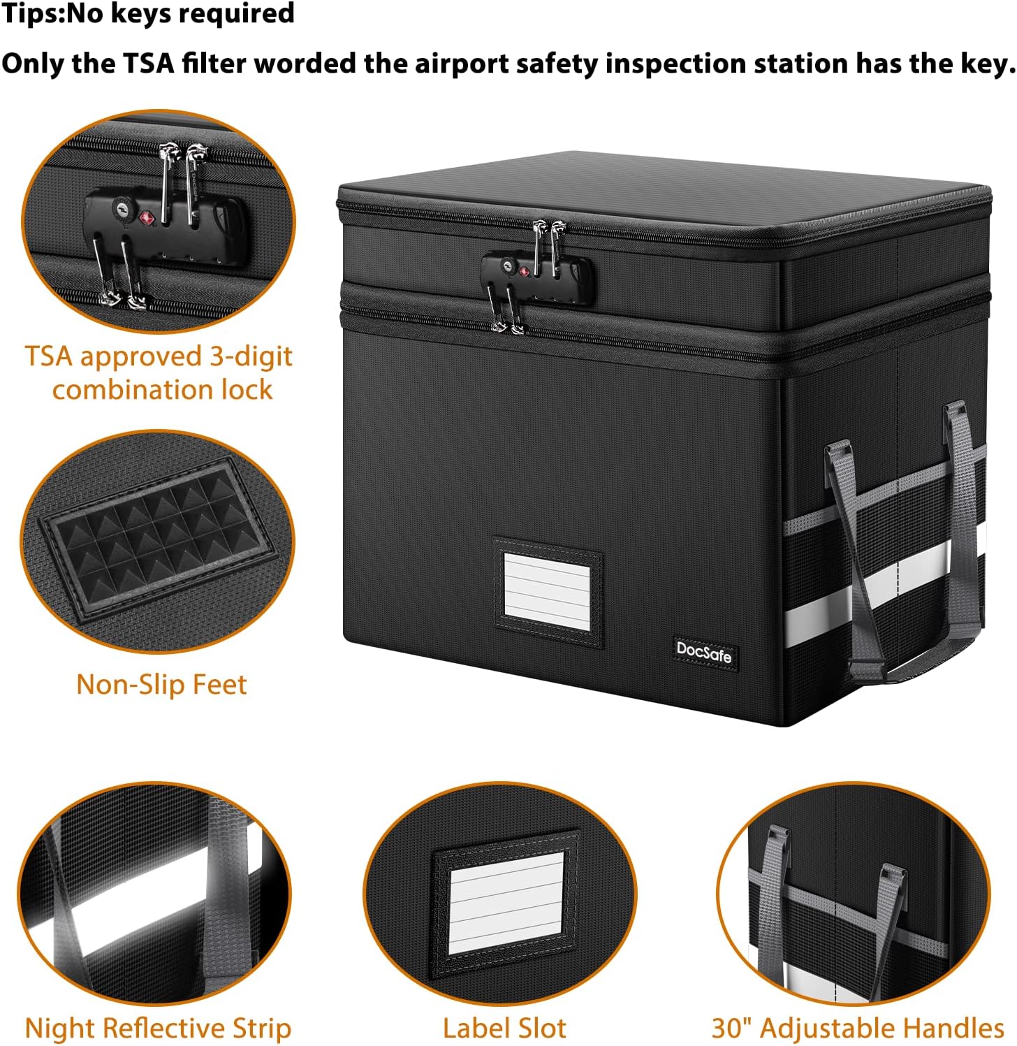 - Innovative Design: Compared to other materials used in boxes which tend to itch and stick to dust,the Dust-proof material we use prevents dust from sticking to the outside of our file box,always keep it neat and tidy.The reflective strip design allows you to immediately find your box even at night,protecting files and valuables from fire.Fireproof document box uses different boards than other box,High quality PP boards won't warp.It can collapses down simply for easier storage when not in use.