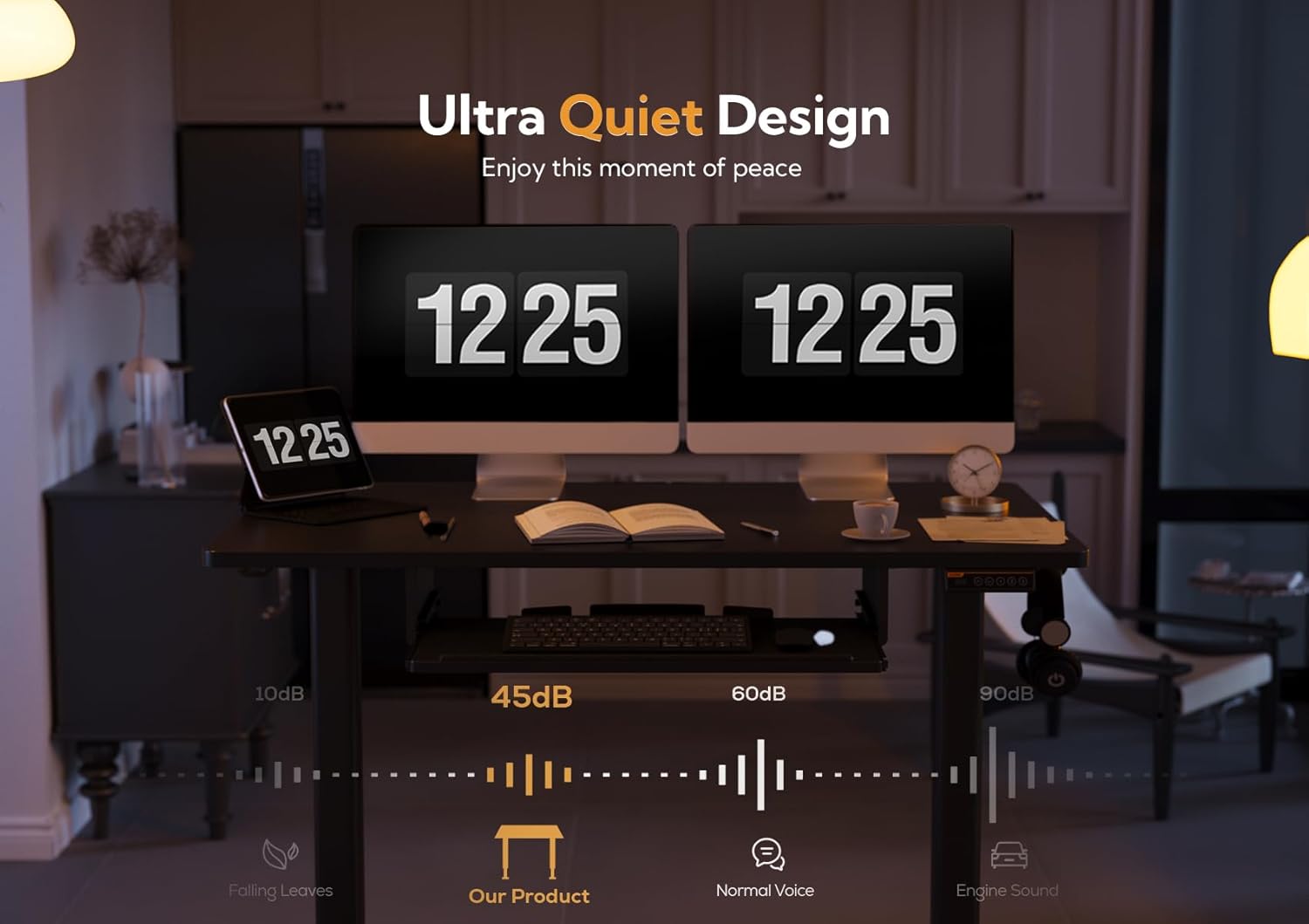 - Ultra-Quiet and Powerful Motor: Claiks custom-designed motors provide robust power for the height-adjustable standing desks. With noise levels as low as 45 decibels, you can enjoy smooth and quiet adjustments, enhancing your workspace without any disruptions.