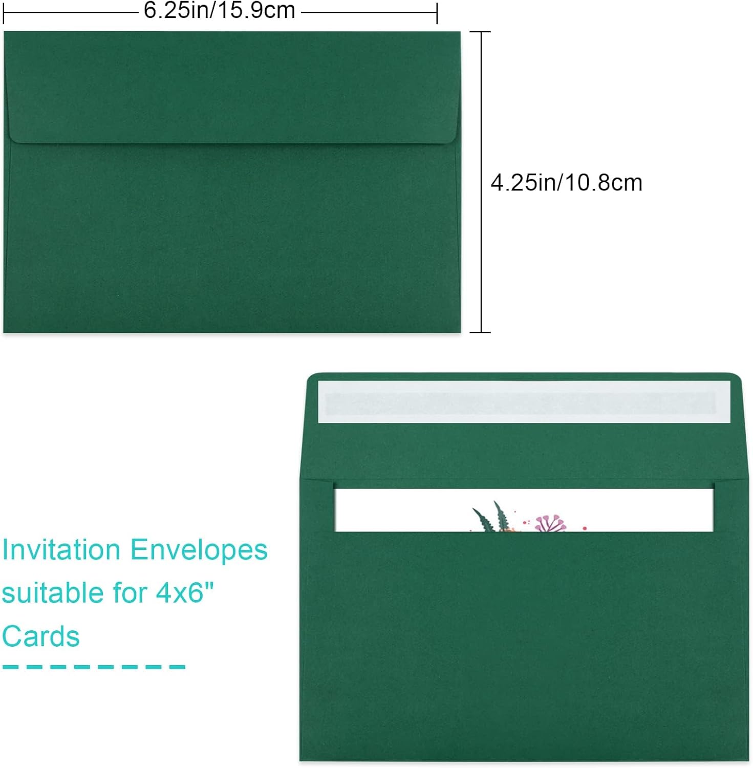 65 Pack Dark Green Self Seal Envelopes - A4, 4x6 Sizes for Invitations, Weddings, Photos, Greeting Cards & Mailing