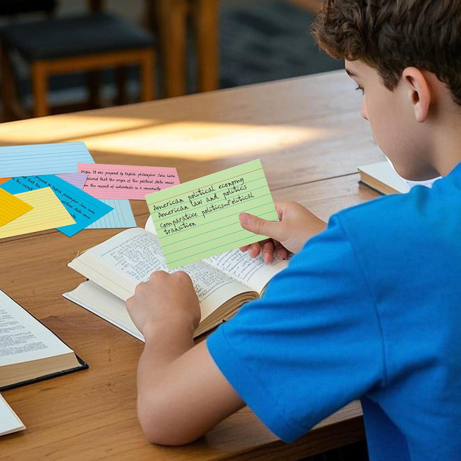 - Color Classification: Featuring 8 vibrant colors, these ruled index cards help you organize different subjects or topics (e.g., Red for Math, Blue for Science, Green for History). The color-coding system makes studying more structured and efficient, keeping your notes neat and organized