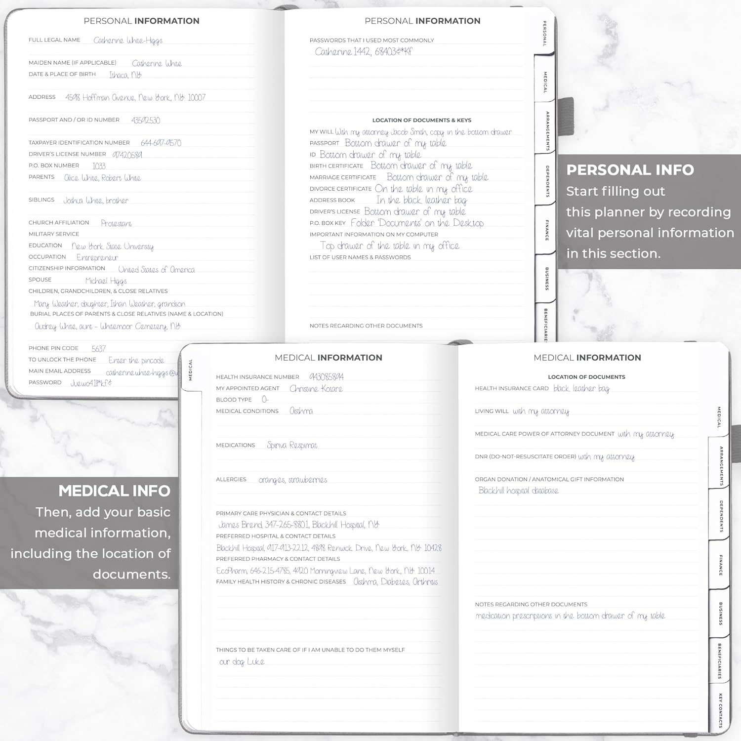 • PREPARE DETAILED INSTRUCTIONS TO GUIDE YOUR LOVED ONES: This guided final arrangements planner is an easy-to-use tool for organizing all essential personal information, from medical data to passwords and financial records.