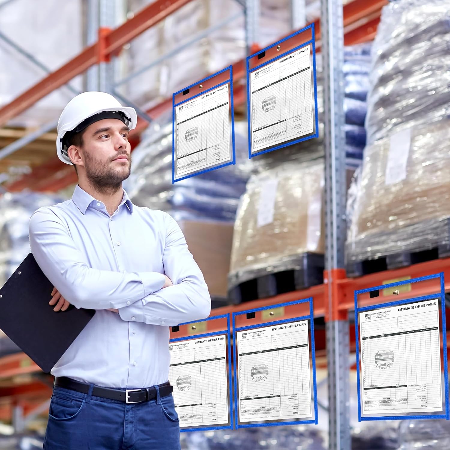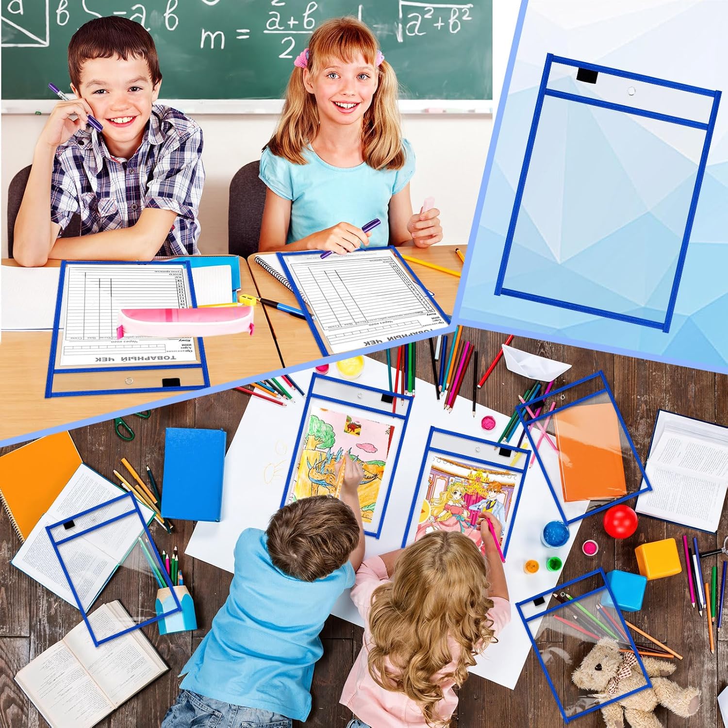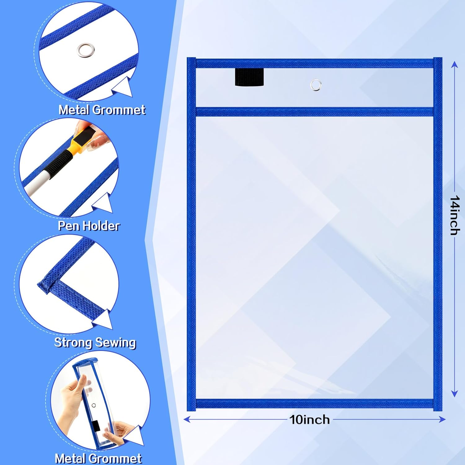 Seajan 120 Pcs Clear Dry Erase Pockets Plastic Sleeves for Paper 14 x 10 Inch Reusable Job Holder Shop Ticket Holders Order Pockets Organizer Teacher Supplies for Classroom (Blue)