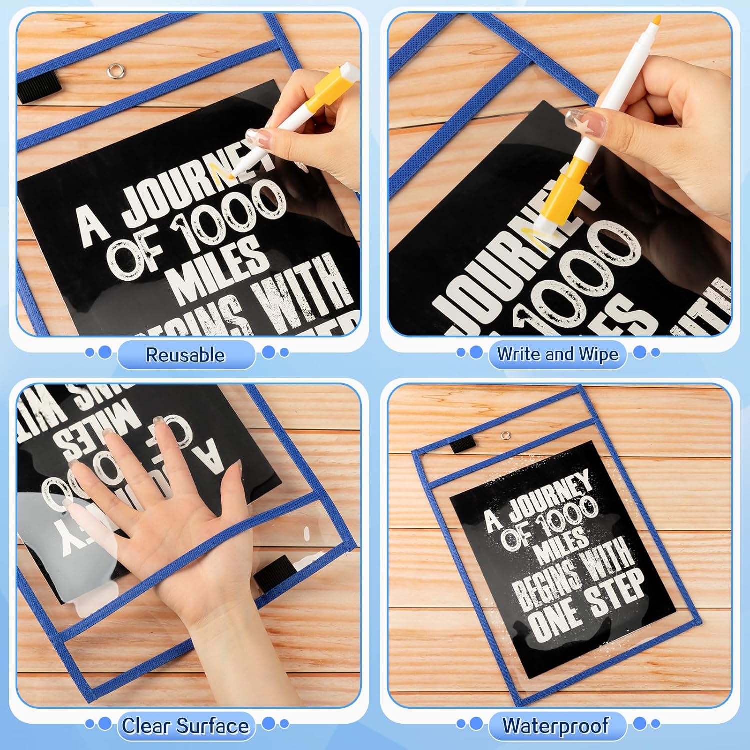 - Clear Design: the reusable dry erase pockets are clear, convenient for you to search documents you want, saving your time and energy; And there is a metal eyelet in the center, convenient for you to hang