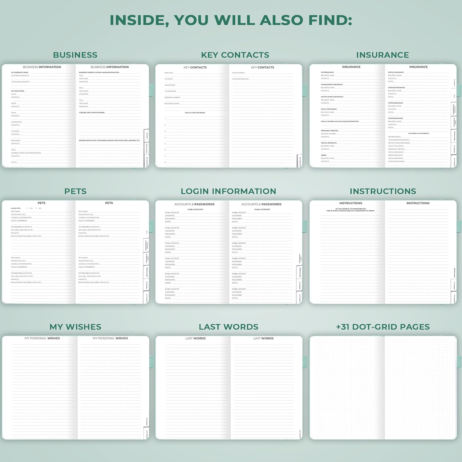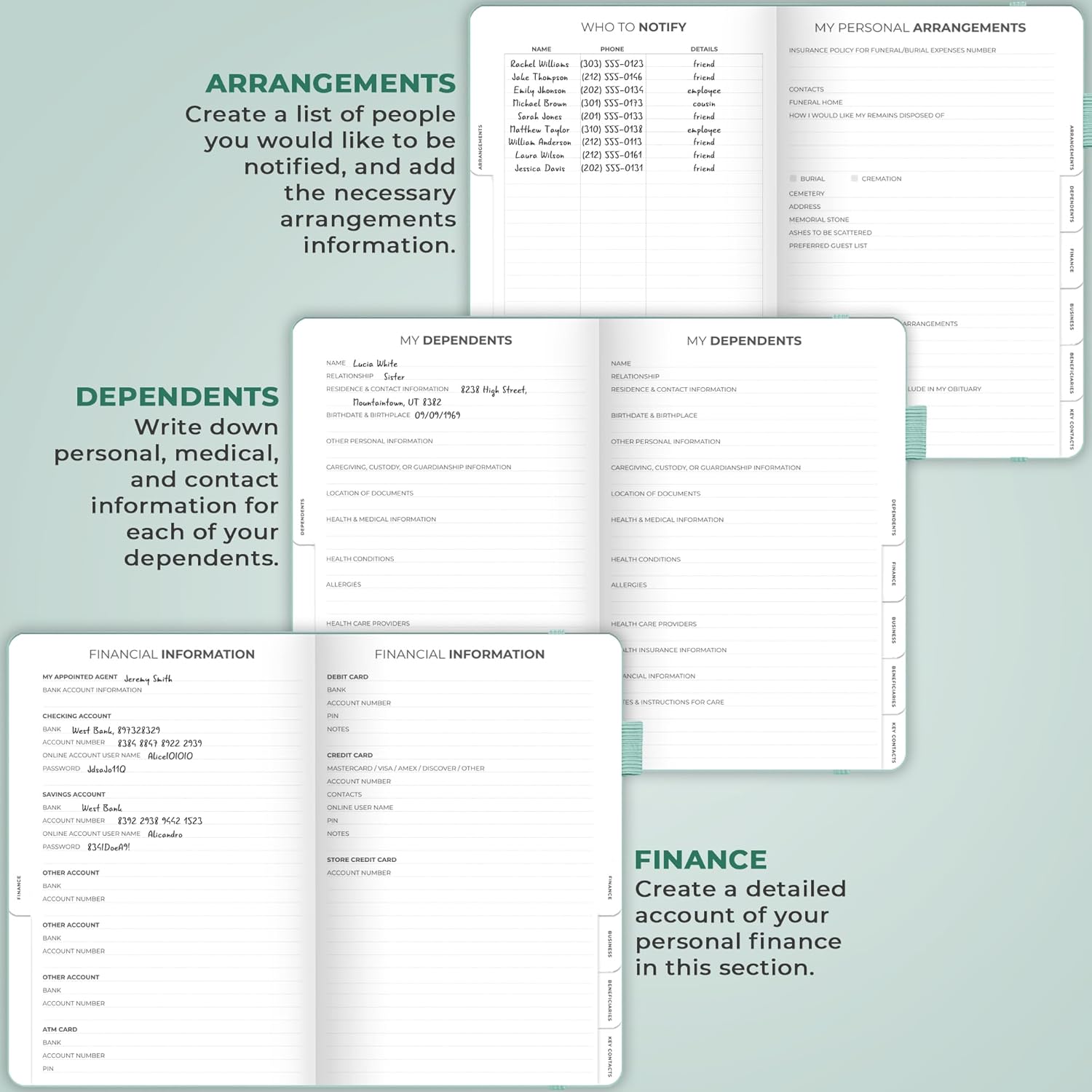 - PREPARE DETAILED INSTRUCTIONS TO GUIDE YOUR LOVED ONES: This guided final arrangements planner is an easy-to-use tool for organizing all essential personal information, from medical data to passwords and financial records.