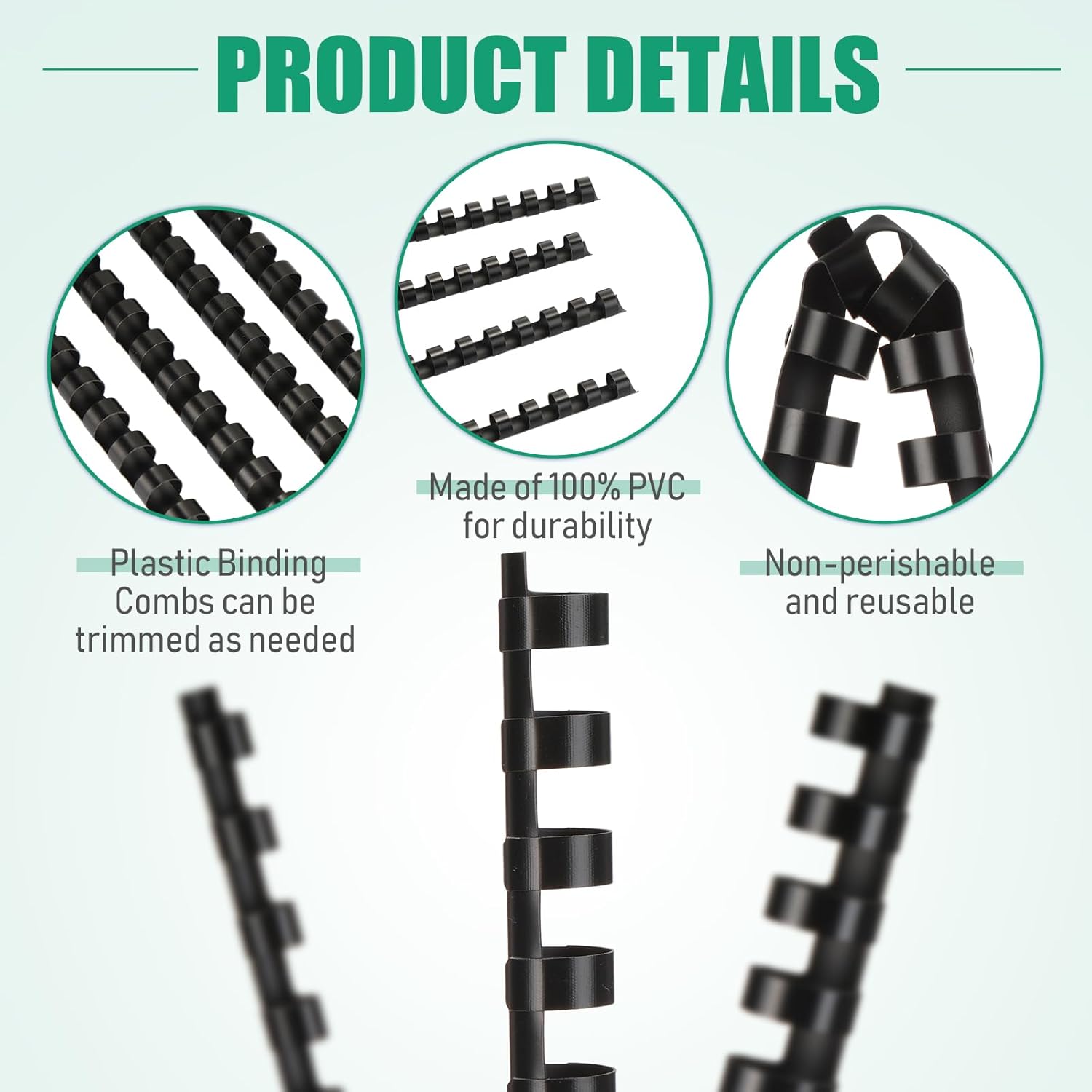 - Size Details: our black comb binding spines have proper size, approx. 1/2 inch, can hold up to 90 sheets of paper, can meet your different needs and give you good using experience