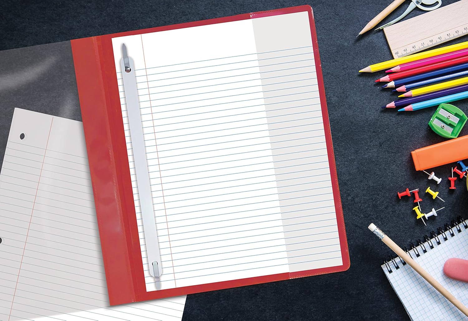 - ACCOMMODATING: Each folder has a two-piece metal prong and poly cover strip assembly to hold up to 150 punched sheets (0.5" capacity) and/or up to 100 in interior pocket.