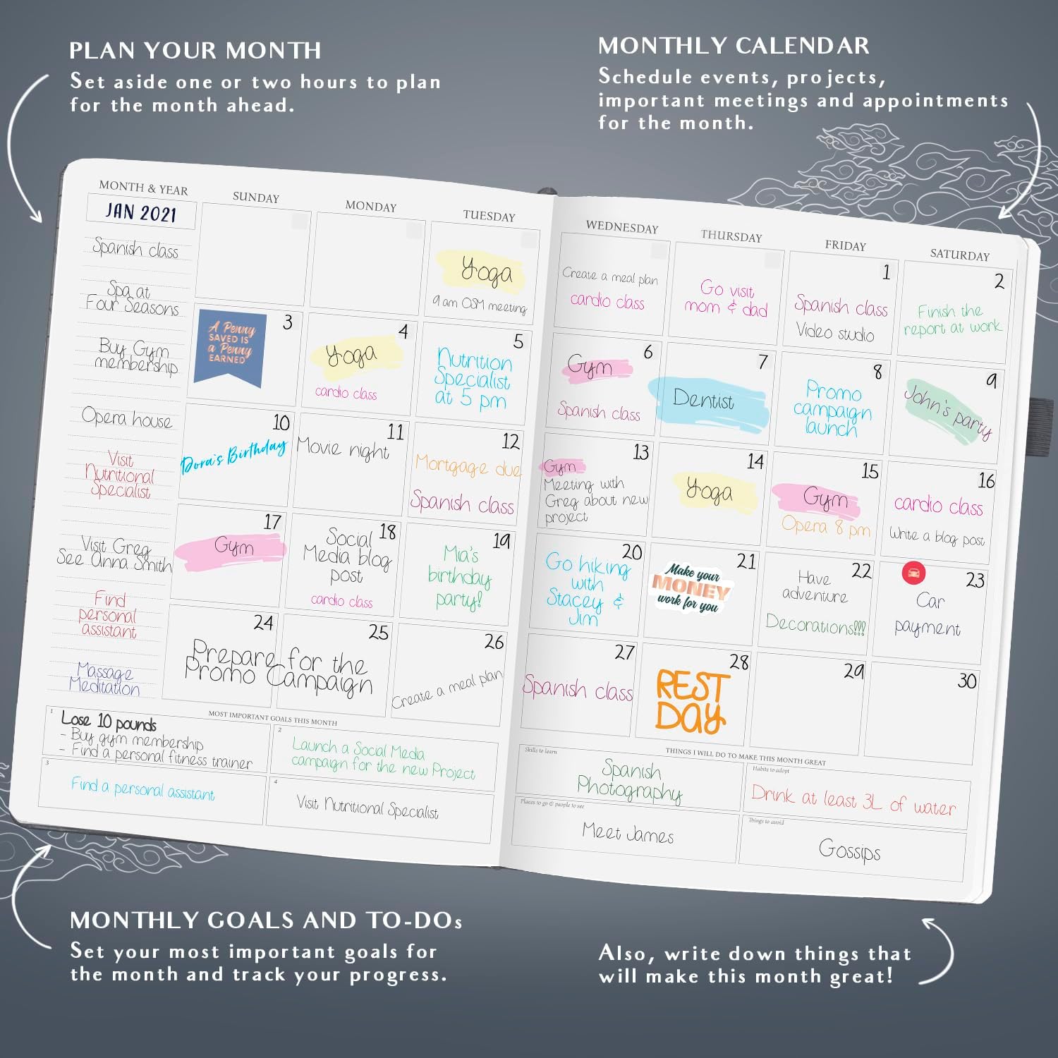 - 60-DAY SATISFACTION GUARANTEE β If you arenβt satisfied with your goal setting planner, we want to hear about any issues you have with business and personal planner and organizer. Reach out to us about appointment book, so we can provide a solution.