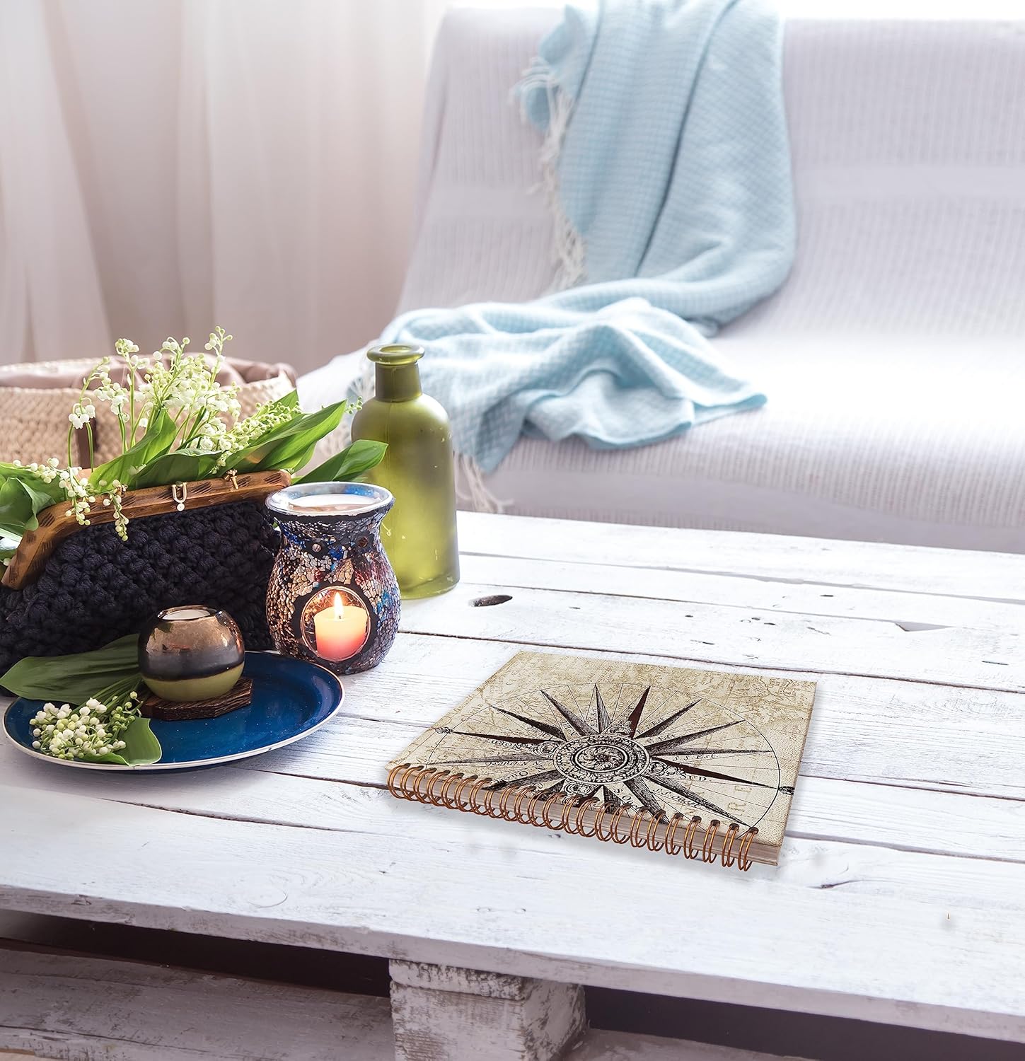 Vintage Map Compass Lined Spiral Journal Notebook 8.3×5.5 Inches Hardcover College Ruled Notebook Journal for Work Note Taking Journaling,Gifts for Ocean Lovers,Sailor Gift