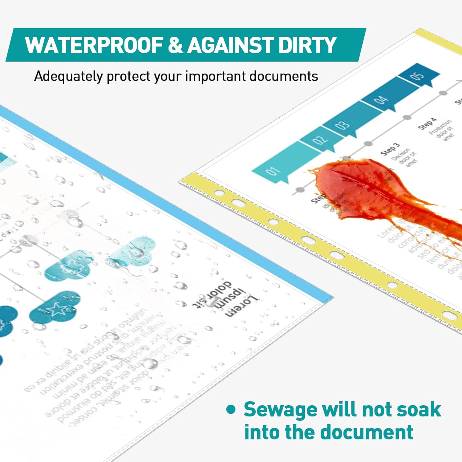 - STURDY AND PRACTICAL: Our ultra lightweight sheet protectors that are enough thick to ensure your papers and documents stay safe for years to come. These protectors absorbs wear and tear, provides great performance, practicality and frequent daily use at home, school or office for any documents you want to keep safe or that are frequently used, Archive safe with our design excluding PVC and Acid
