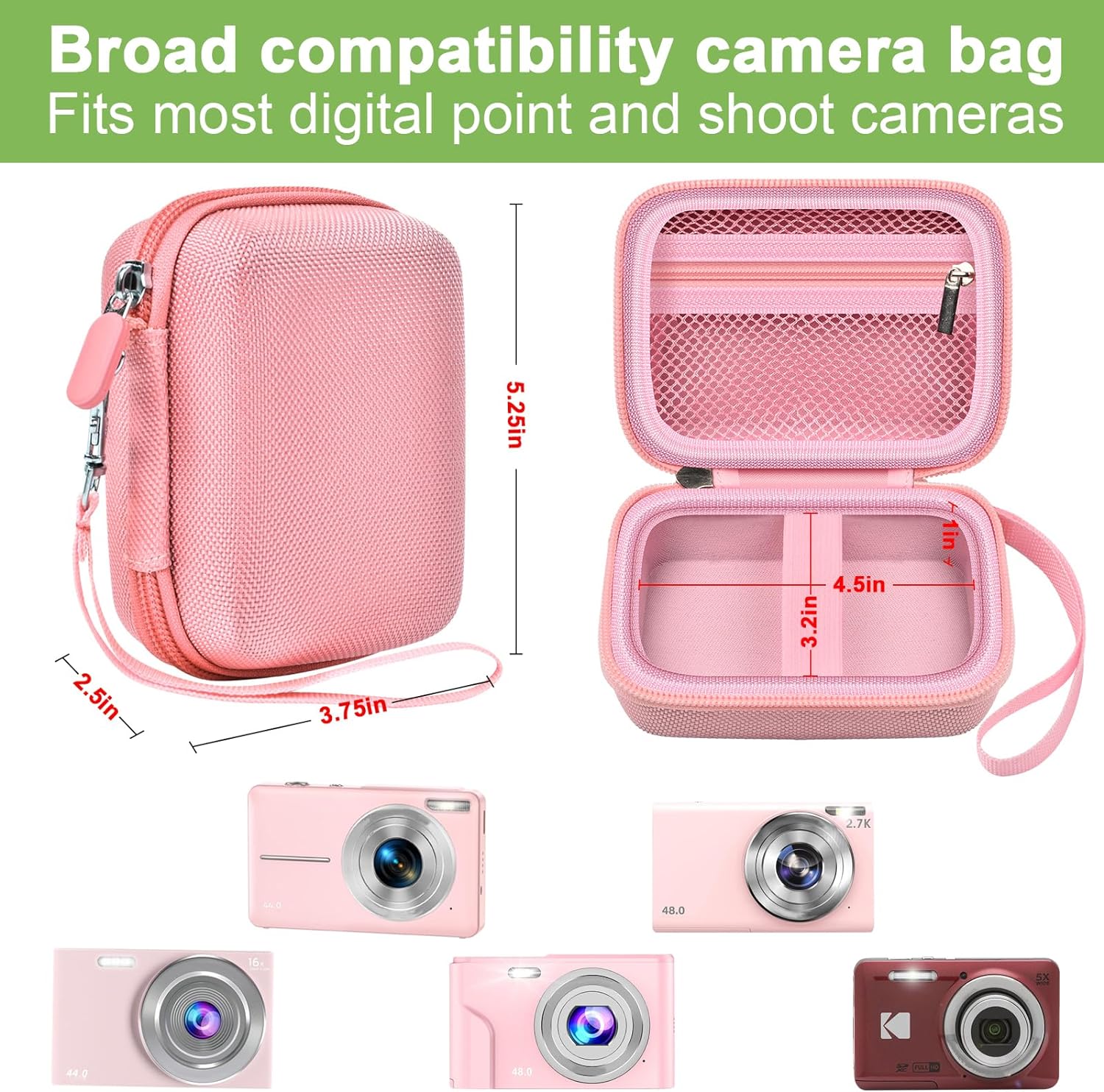 Digital Camera Case Compatible with VAHOIALD FHD 1080P/ for CAMKORY Digital Point and Shoot/for KODAK PIXPRO FZ45-BK 16MP Vlogging/for IWEUKJLO/for Nsoela, Holder for SD Card More- Pink (Box Only)