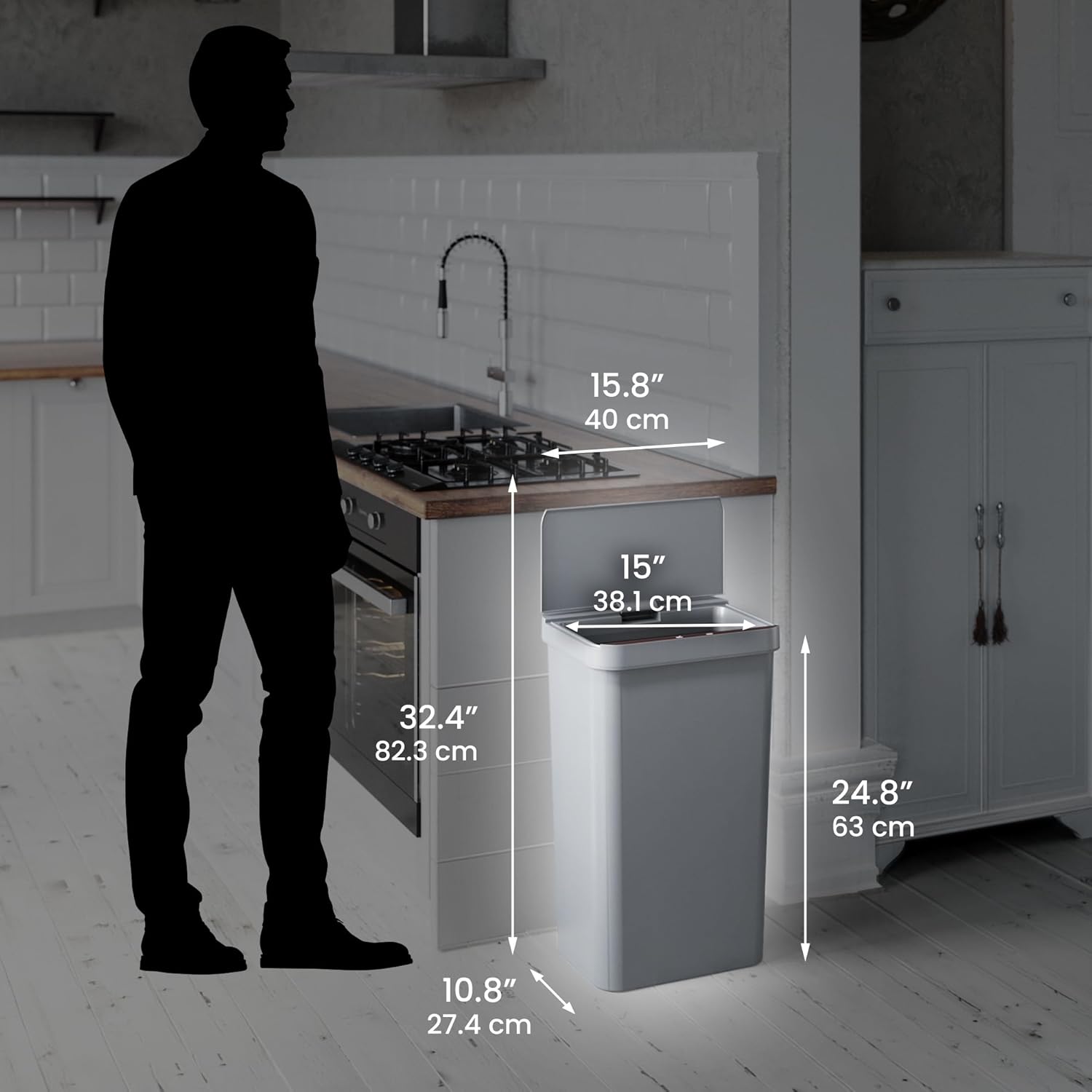 - 100% TOUCHLESS & HYGIENIC β Just the motion of your hand opens the lids automatically! This touchless trash can is the hygienic and convenient choice.