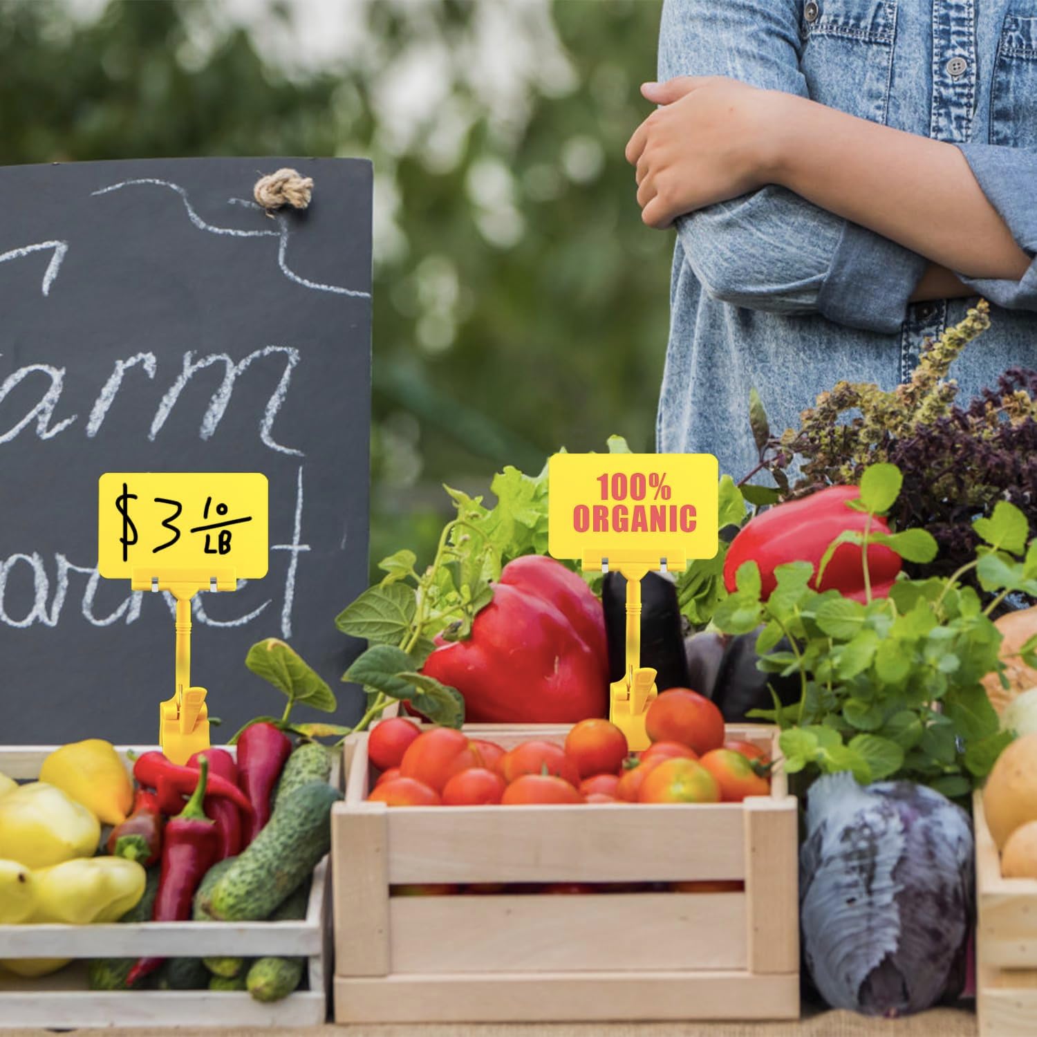 Coobbar Clip-On Sign Holder,20 Pack Merchandise Sign Clips Sign Holder Clips Pop Label Clips Retail Merchandise Rack Sign Double Display Clip Sign Holding Clamp,Price Tag Display (Yellow)