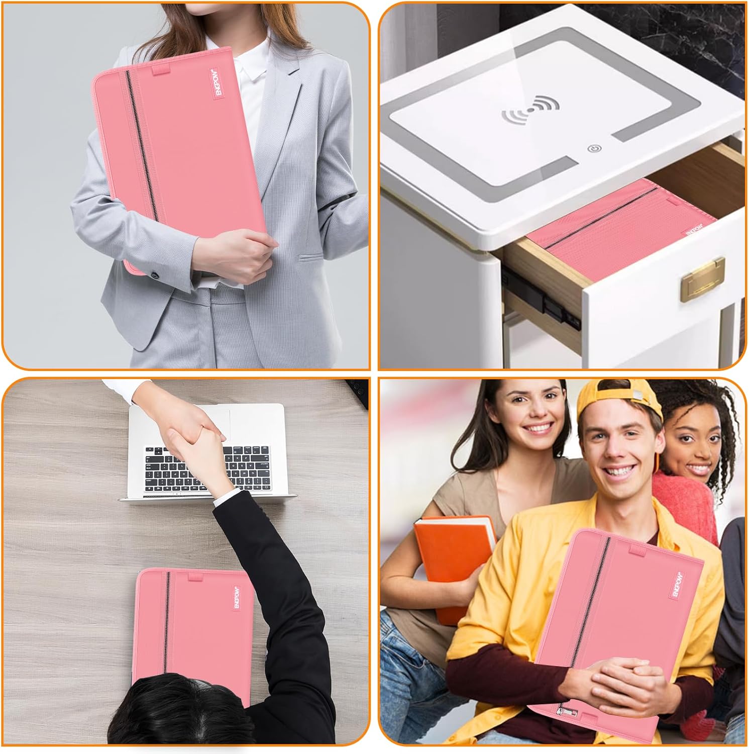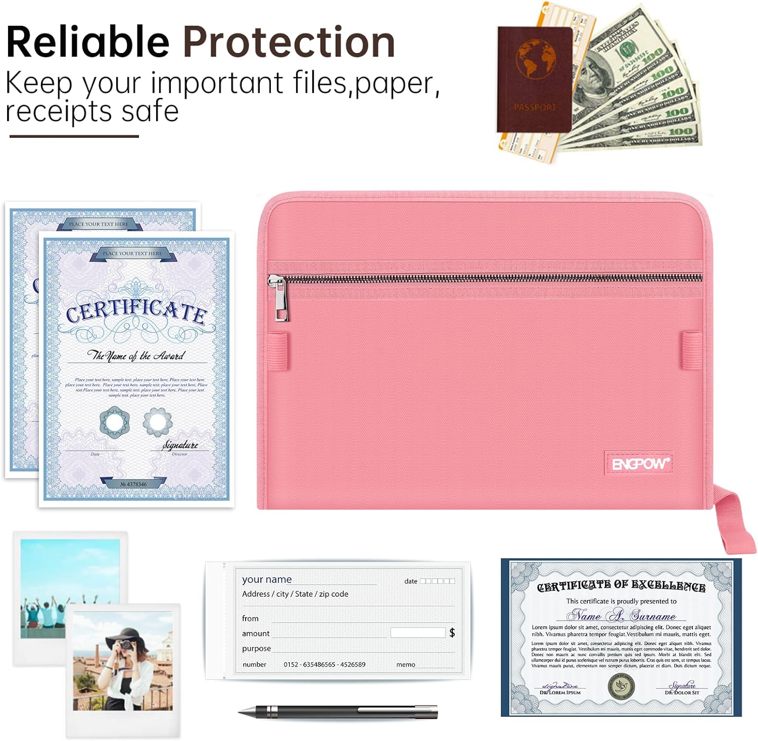 ENGPOW Accordion File Organizer,Fireproof 13 Pockets Expanding File Folder,Document Organizer Folder with Zipper&Labels,Portable Home Travel Safe Storage for Letter A4 Files and More,Pink