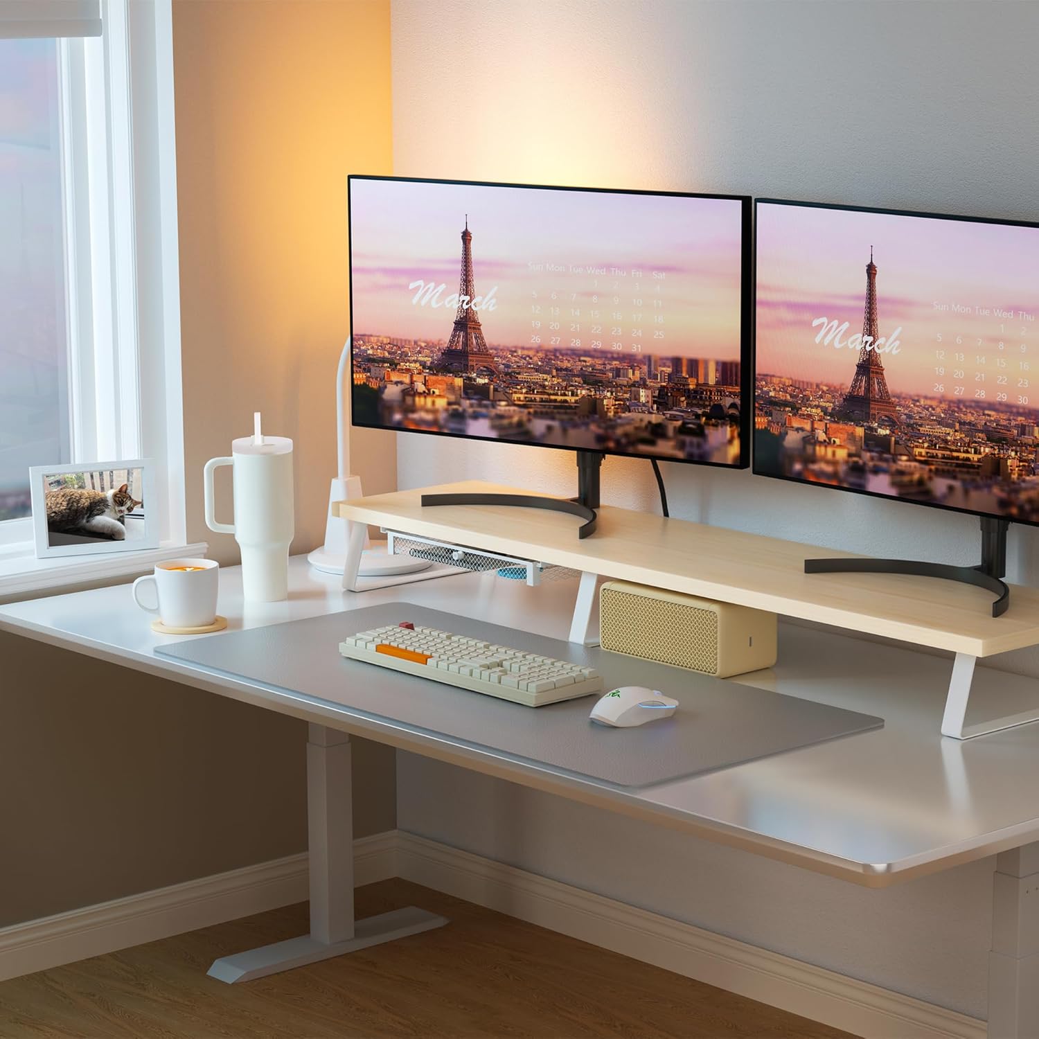 Aothia Dual Monitor Stand Riser - Monitor Stand with Drawer,Monitor Stand For 2 Monitors, Desk Shelf For Monitor with Metal Legs, Wood Monitor Stand with Storage Organize For Pc,Laptop,Screen (Oak)