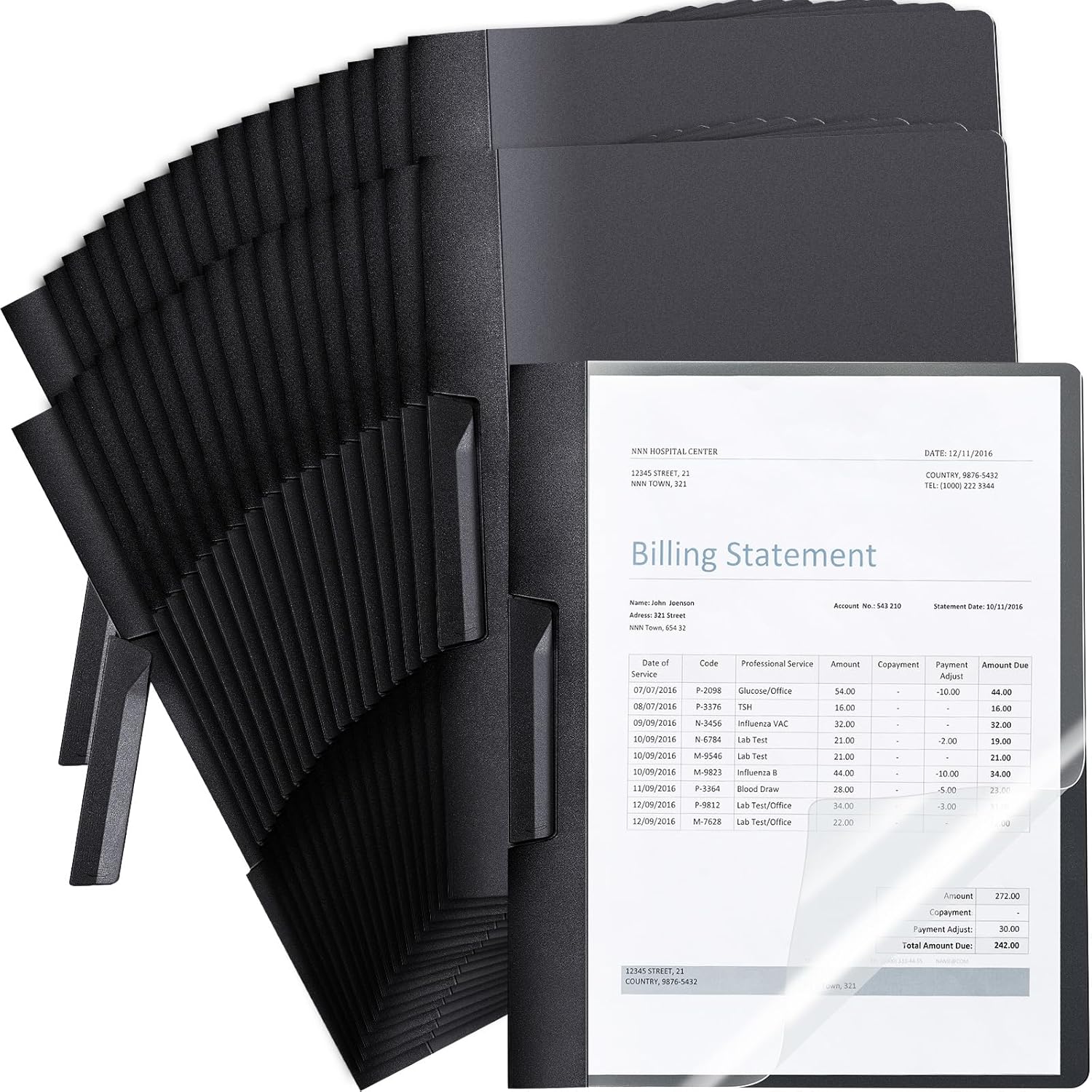 Maitys 50 Pack Clear Report Covers with Clip 11.4 x 9 Inch Presentation Folders Transparent Front Portfolio Folders for Letter Size(Black)