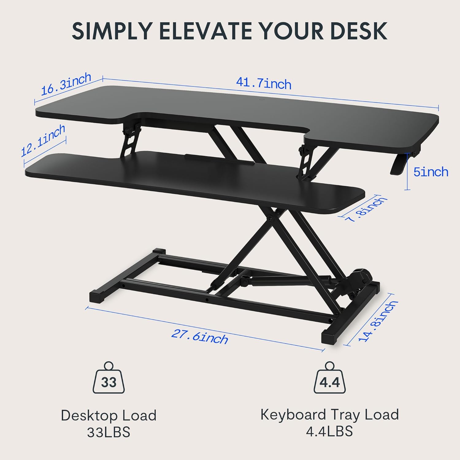 - Ergonomic Design - FlexiSpot sit stand converters are designed and tested for your safety and ease. Adjustable workstation allows you to find a healthy balance between sitting or standing throughout the day, the streamlined edge design is beneficial to relieve wrist pain, reduce stress, and improve productivity.