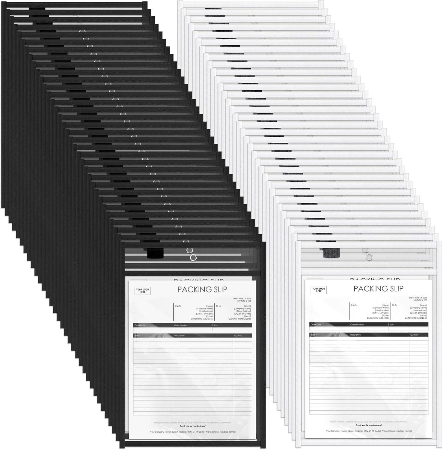 Seajan 120 Pcs Clear Dry Erase Pockets Plastic Sleeves for Paper 14 x 10 Inch Reusable Document Holder Shop Ticket Holders Dry Erase Pocket Organizer Teacher Supplies for Classroom (Black, White)