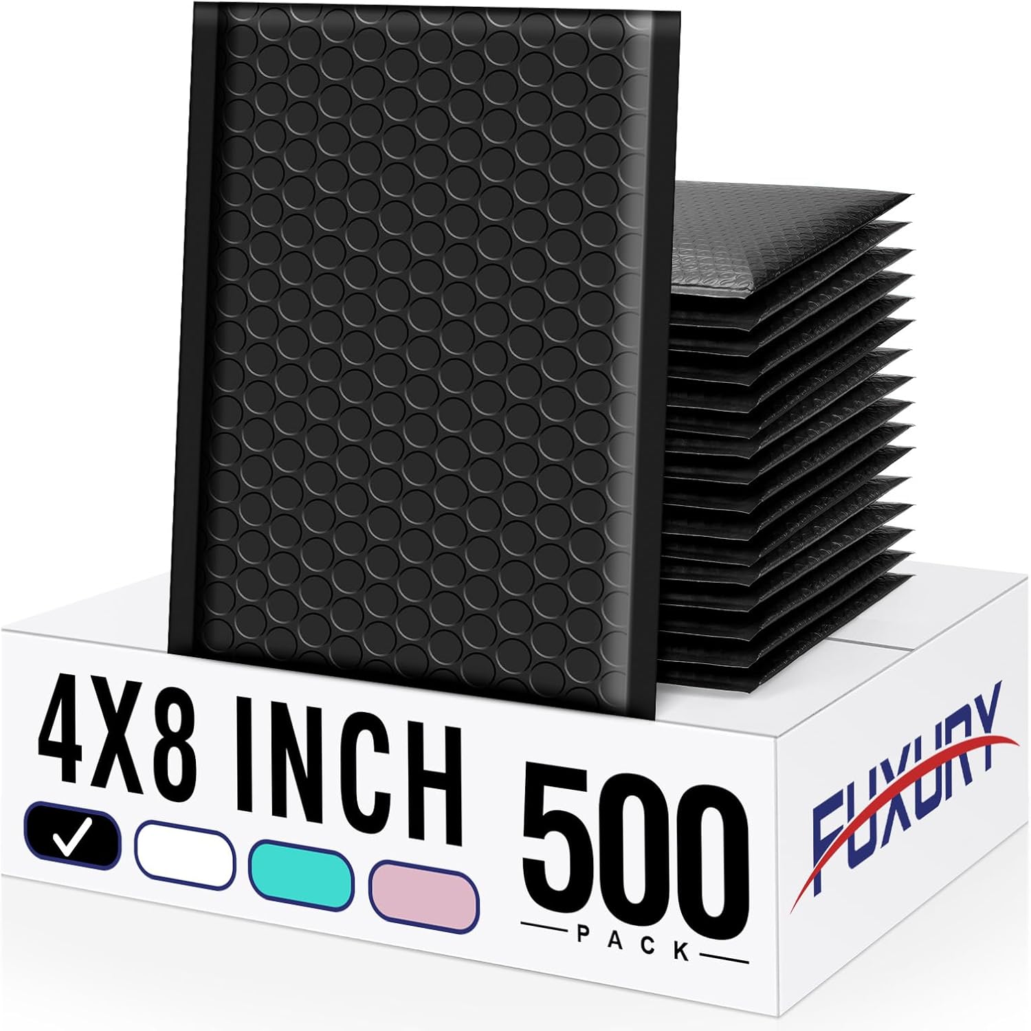 Fuxury Bubble Mailers 4x8 Inch 500 Pack Padded Envelopes Usable Size 4x7" Thick Mailing Envelopes Bubble Opaque Padded Mailers Shipping Bags for Mailing Jewelry Makeup Small Business Black