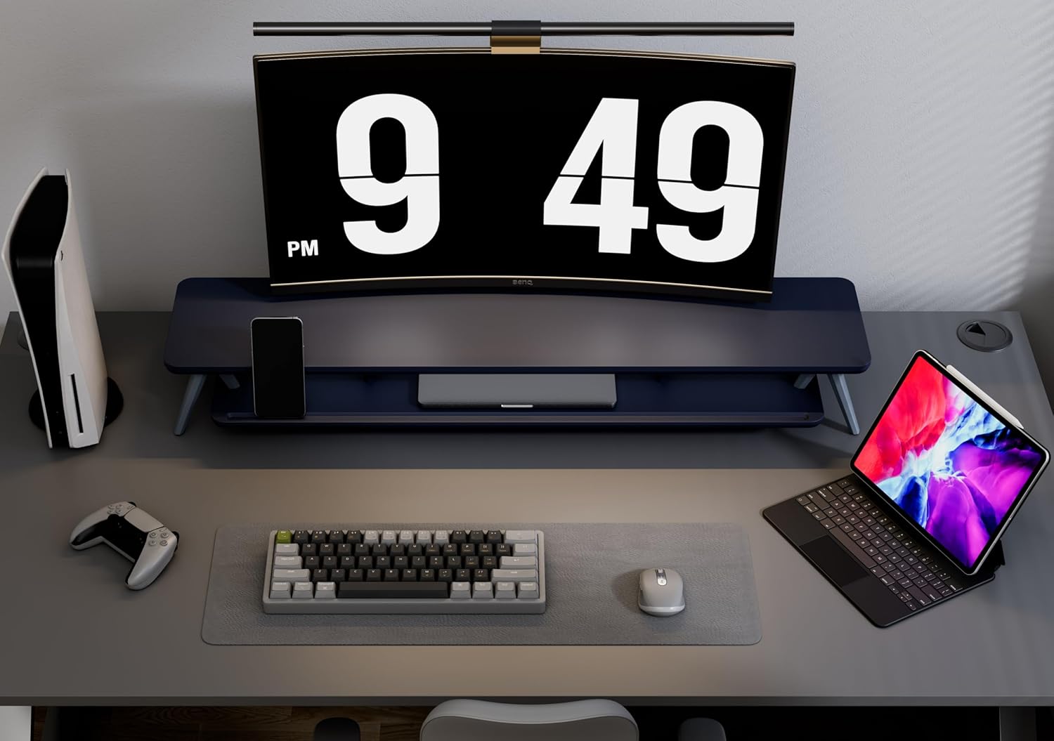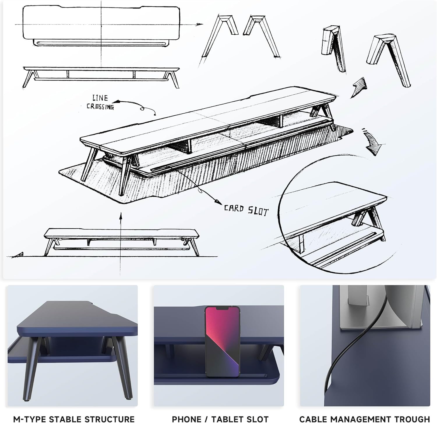 • 【2 TIER DESKTOP ORGANIZER】At longest 42.5inch wide,longer size with more space. This laptop riser is big enough to support two monitors. It has 1 universal device holder slot and 3 high capacity compartments. You can easily store your office accessories & supplies under your monitor stand to keep your desktop tidy. Our monitor stand rise comes with cable management slots that can make your cord stay organized.