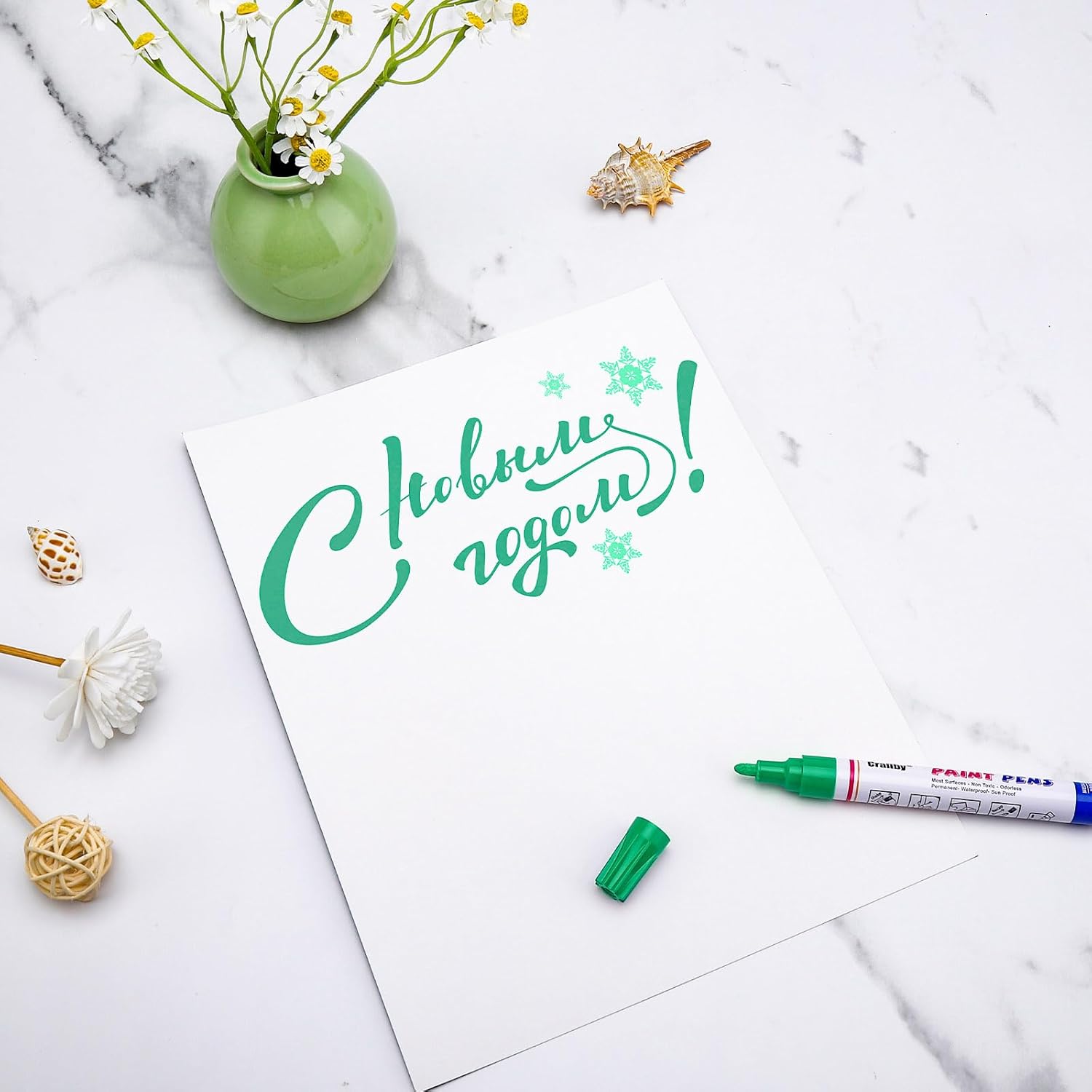 Green Paint Markers, 8 Pack Oil-Based Waterproof Quick Dry Permanent Paint Pen Set for Rocks Painting, Wood, Fabric, Plastic, Canvas, Glass, Mugs, Metal, Tire, Stone, DIY Craft