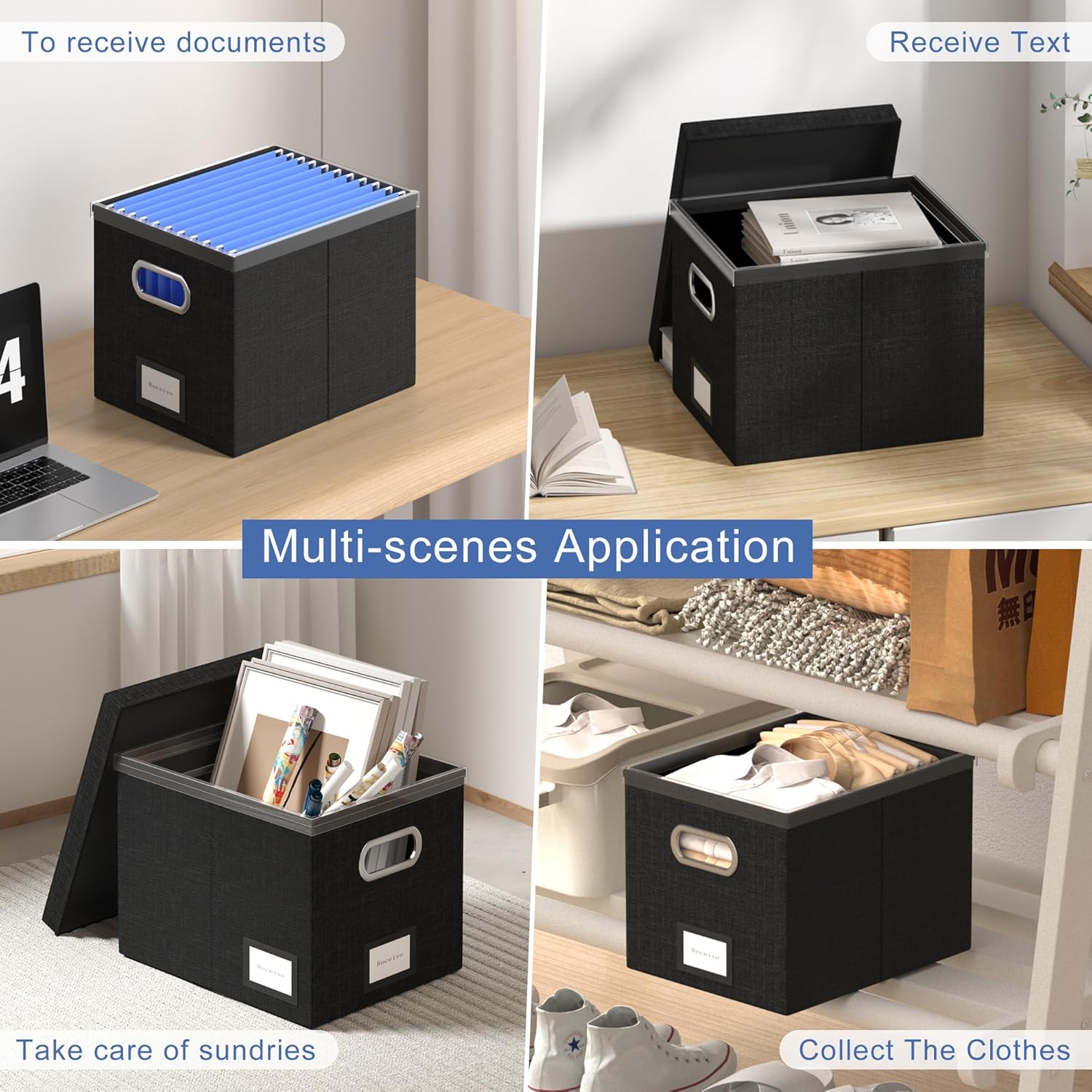 File Organizer Box File Boxes for Hanging Files with Lid Set of 3 Decorative Hanging Folders Letter Size Organizer with One-Piece Plastic Frame Slides (13.2 * 10.1 * 10.1in(3Pack), Black)