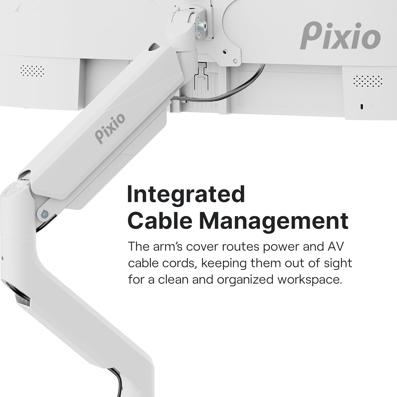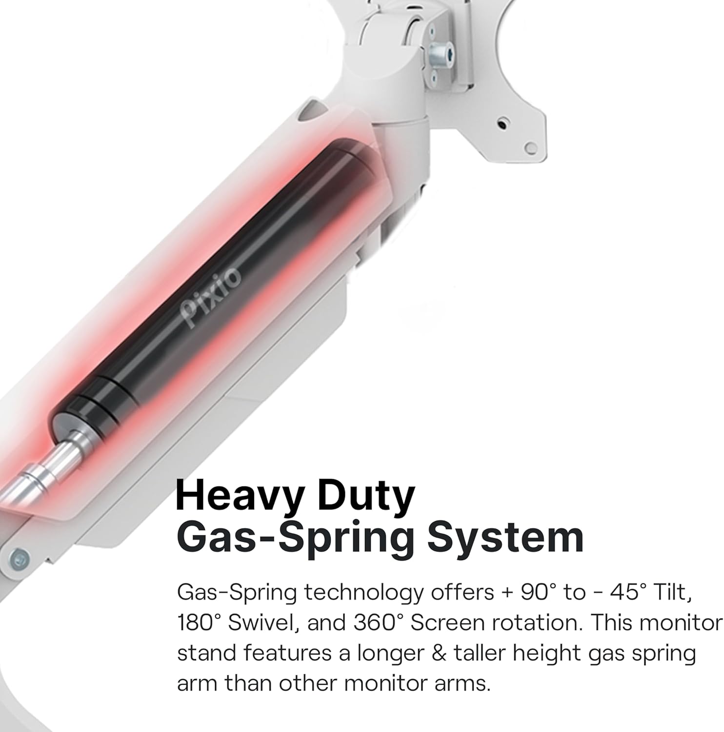 Pixio PS2S White Ultrawide Heavy-Duty Premium Single Monitor Arm Stand Desk Mount - Fits up to 49 inches Monitors, Weights up to 39lbs Flat / 31lbs Curved, Compatible with VESA 75x75 100x100mm