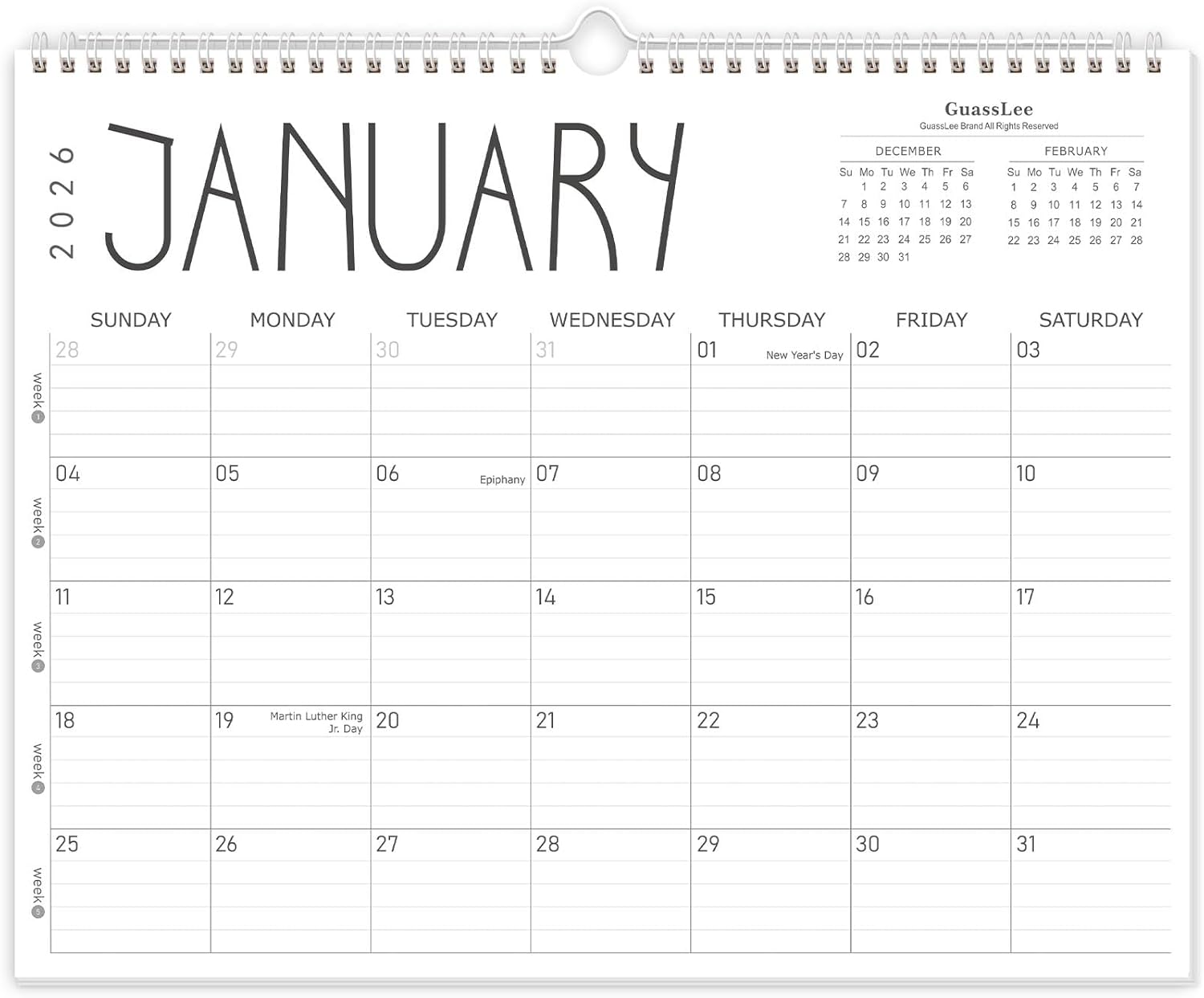 GuassLee Wall Calendar 2026, 2026 Calendar Wall from Jan. 2026 to Dec 2026, 14" X 11" Paper Monthly Planner Wall Hanging Calendar with Thick Paper for Office Home Planning & Organizing
