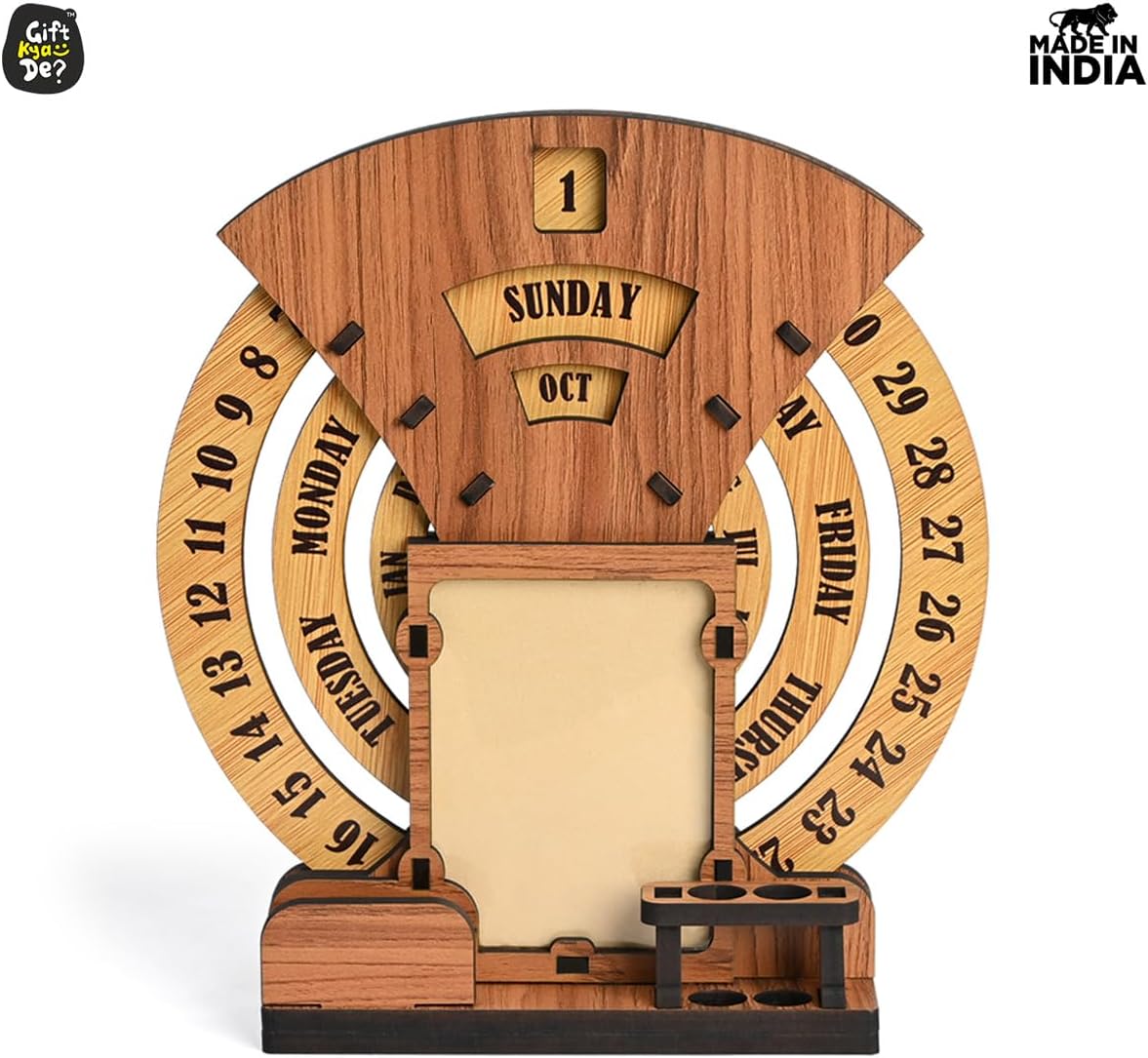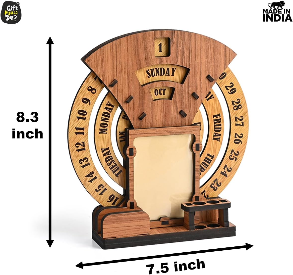 GKD Calendar To Lifetime, Calendar With Desk Organizer And Photo Frame For Office, Home Decor, Corporate Gifts (Dark Wood Eco Friendly)