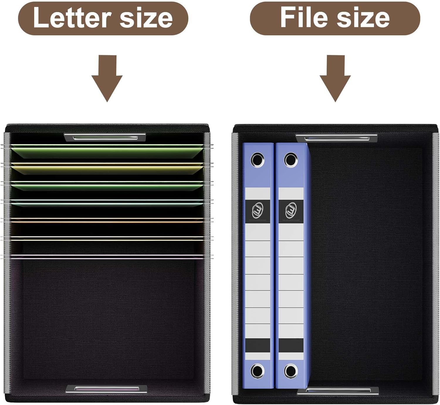 - Unique Functional Design - This file boxes both sides are equipped with practical PVP slide rails, which can not only prevent the two sides of the file storage box from loosening, but also facilitate the sliding of the file folder, which is very suitable for hanging file folders. The metal handles on both sides allow us to easily move the storage box, and the label slot on one side facilitates classification. Functional features and a beautiful design create the best filing box organizer.