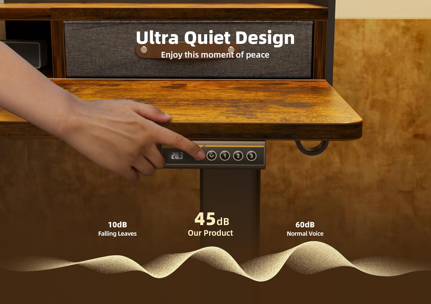 - Smooth Height Adjustment: Freely select adjustable standing desk height, from 28.35" to 46.46". Save your favorite three settings and smoothly switch the electric standing desk between them.