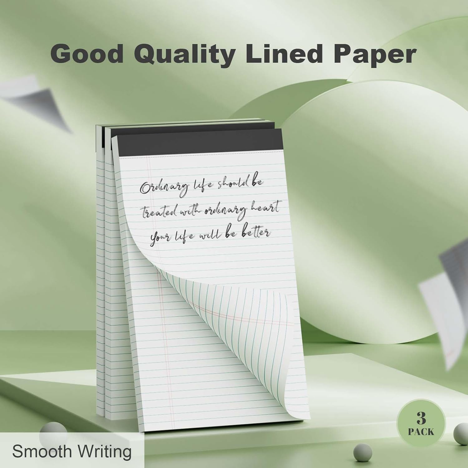 - [ENJOY WRITING]: The white legal pad 8.5 x 11 paper with the blue line and double red border line on the left side for clear lines and colors. The notepads 8.5 x 11 letter sized with smooth paper, without letting the nib bleed through to the back of the paper. The lined notepad 8.5 x 11 is made of 70gsm paper, which is thicker than a typical writing notepad, and the writing pad will not crack under pressure like some smaller notepads.