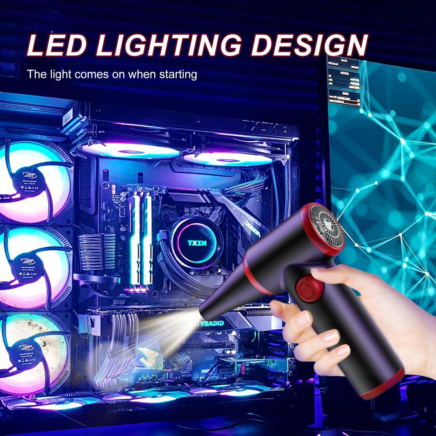 - Air Duster【Brushless Motor】Equipped with a brushless DC motor for a longer service life. It not only has stable performance, but also can produce a powerful blowing force of 3.04 oz. The maximum speed of the Air duster can reach 100500RPM.The noise is less than 80dB, low noise while retaining strong airflow to effectively remove dust Get a quiet cleaning experience whether at home or in the office.