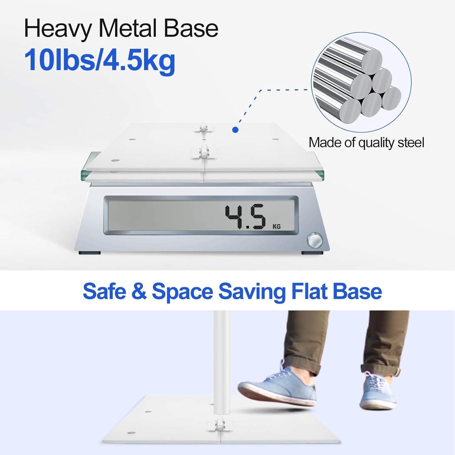 - 【Heavy Metal Base】 The base is made of good quality iron. And the large contact area as well as the weight ensure the stable support. Meanwhile, the flat base can avoid the exposure of stand.
