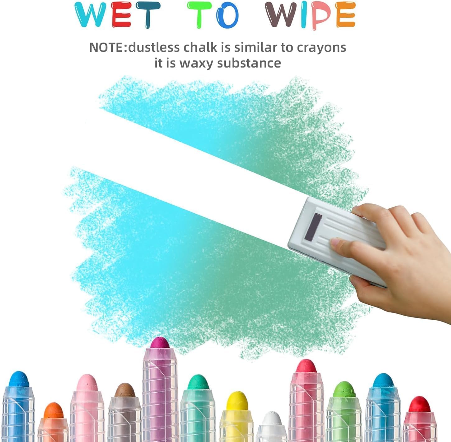 - Pros: Our dustless chalk is adjustable chalk holder, can be rotated like lipstick, easy to use, protects chalk from breakage or damage, and avoids chalk dust flying into your eyes.