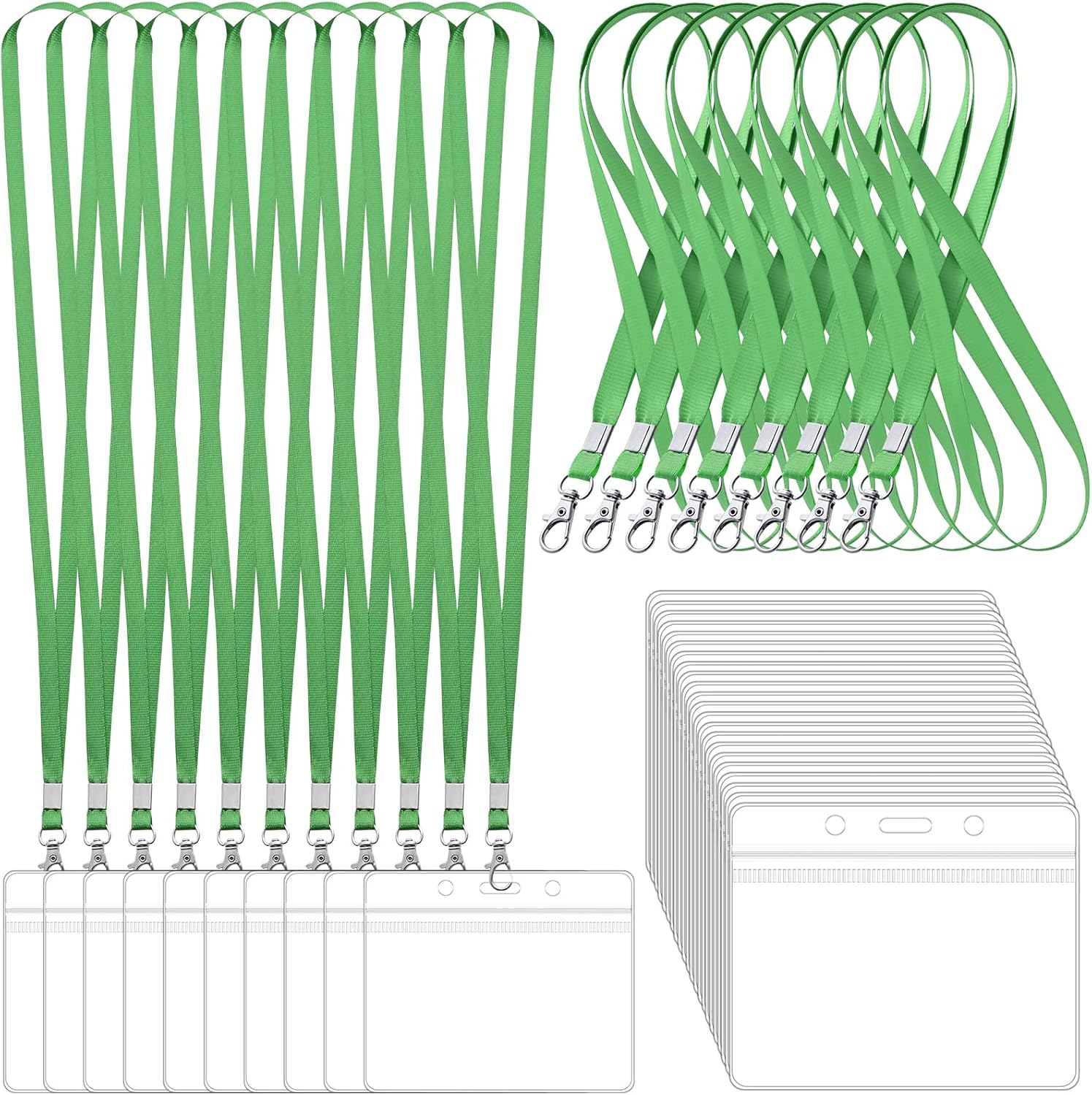 100 Pack Lanyards for ID Badges with Clear Name Tags, Reusable Lanyards Horizontal ID Card Badge Holders Plastic Name Badges for Men Women Kids Business School and Office Supplies (Green)