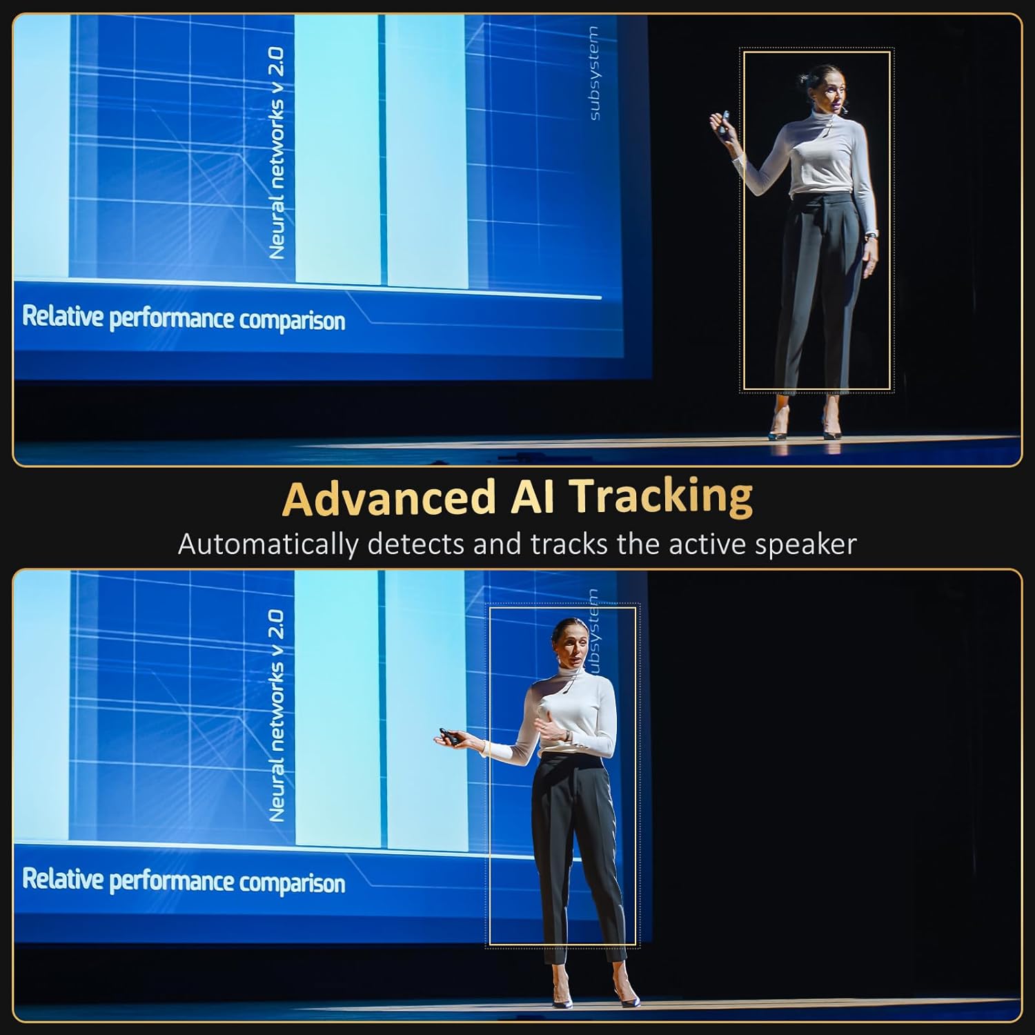 - ăPTZ Camera with AI Auto TrackingăHarnessing advanced AI Algorithms 3.0, this camera achieves monocular human auto-tracking, smoothly capturing movements with superior quality. Supporting Full HD 1080P video output at up to 60fps, it delivers true-to-life colors. It's ideal for Church live services, Schools, Live Streaming, Broadcasts, Hospitals, Weddings, and Houses of Worship.