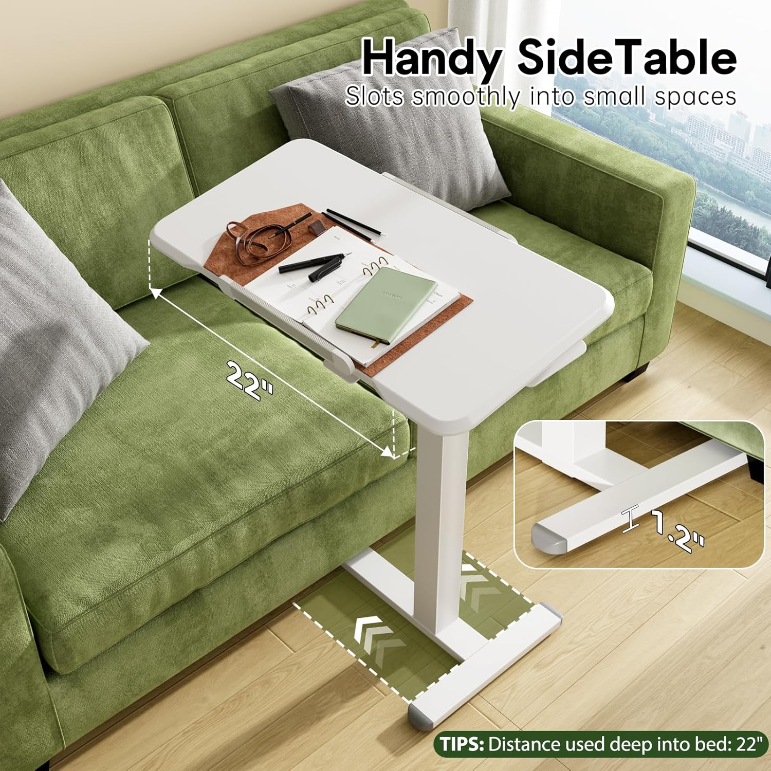 - Height Adjsutment: The height of rolling computer desk can be adjusted from 27.2" to 41.3" with smooth one-button lifting. The bedside table built-in gas spring is easy to switch between sitting and standing positions