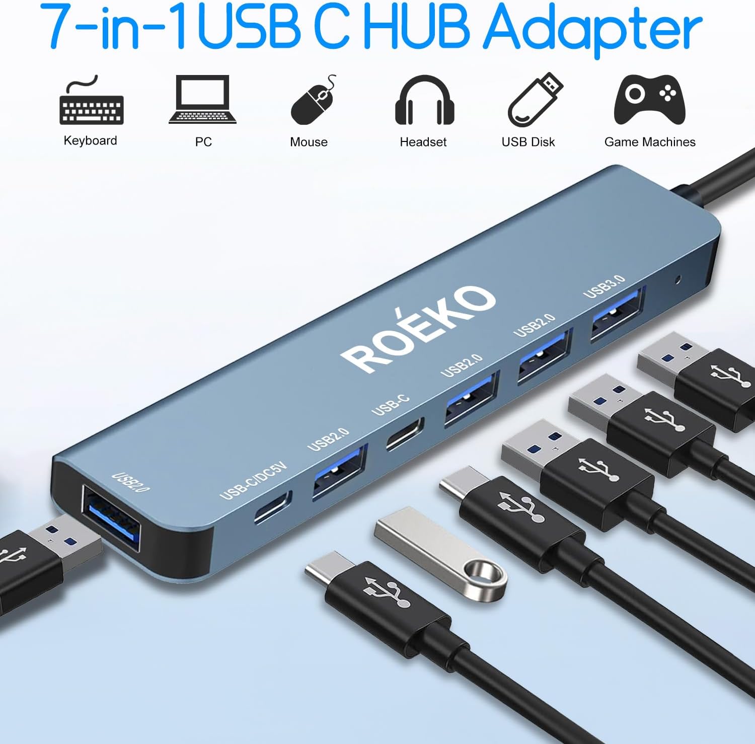 - Usb hub with usb c,USB Hub Multiport Adapter 7-in-1 USB-C hub,USB-A and USB-C is designed combination, compatible with laptops, Phone, Tablet and other devices simultaneously,sturdy and durable due to the aluminum housing,can make your usage so easier